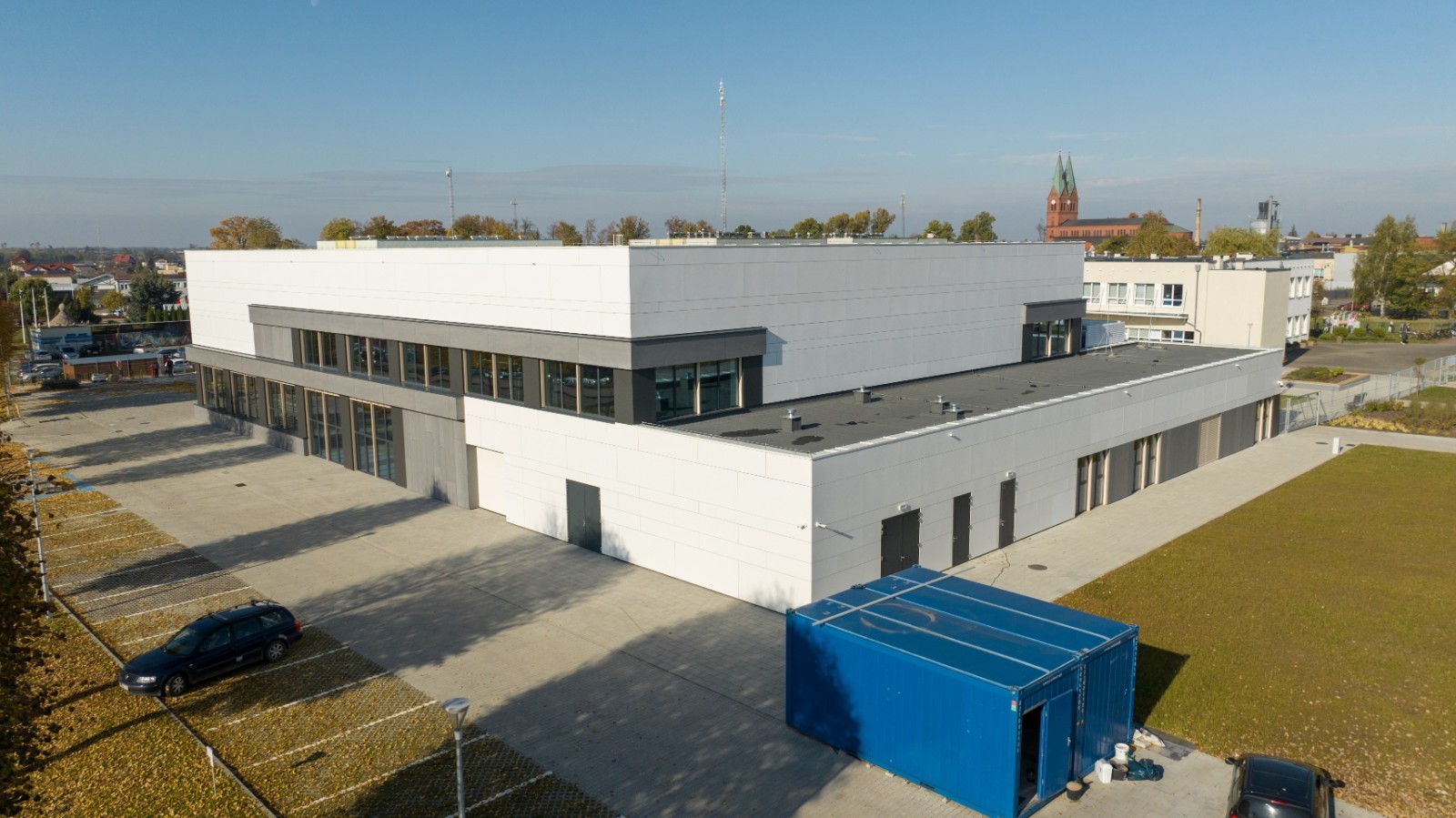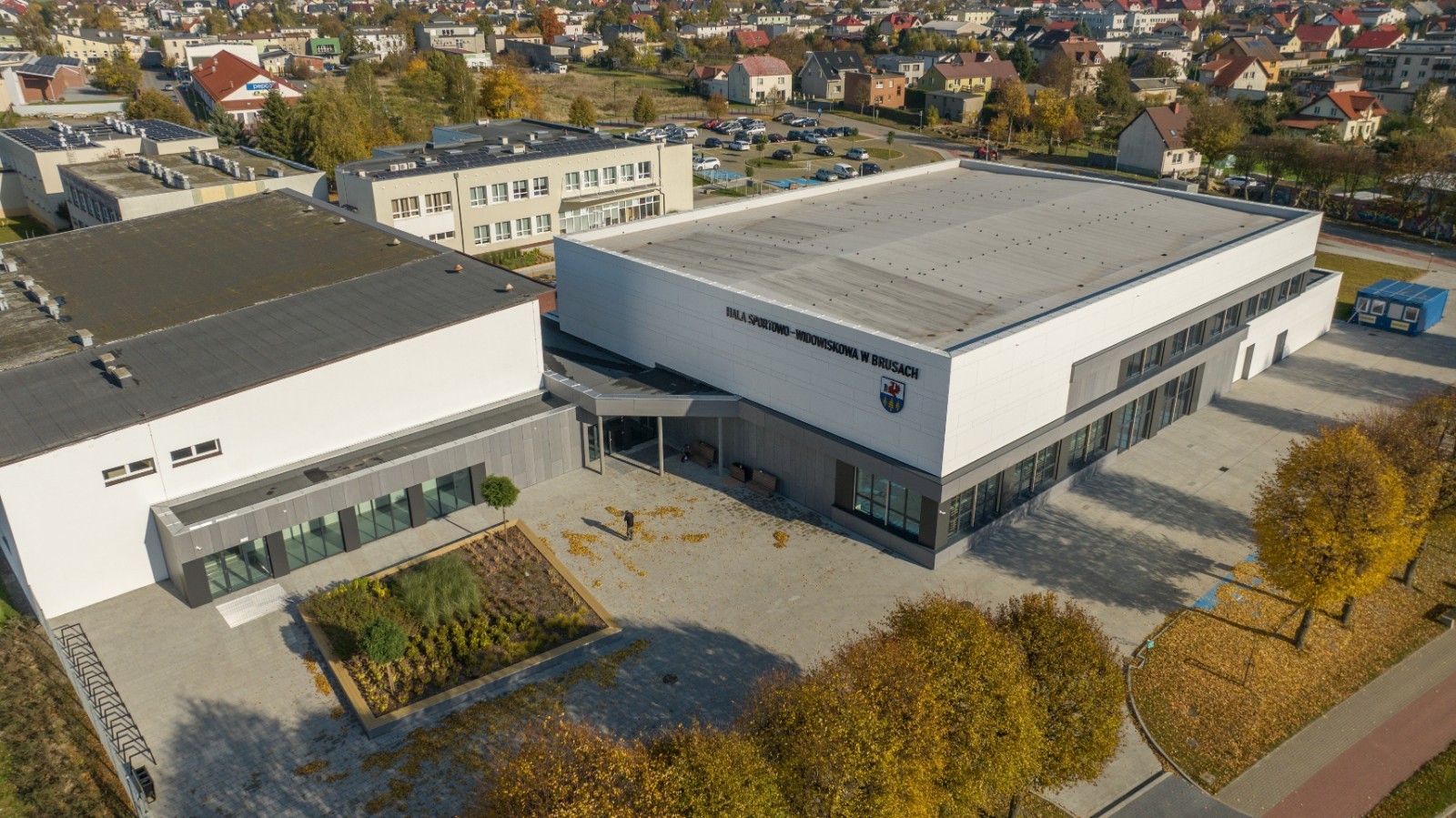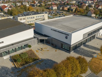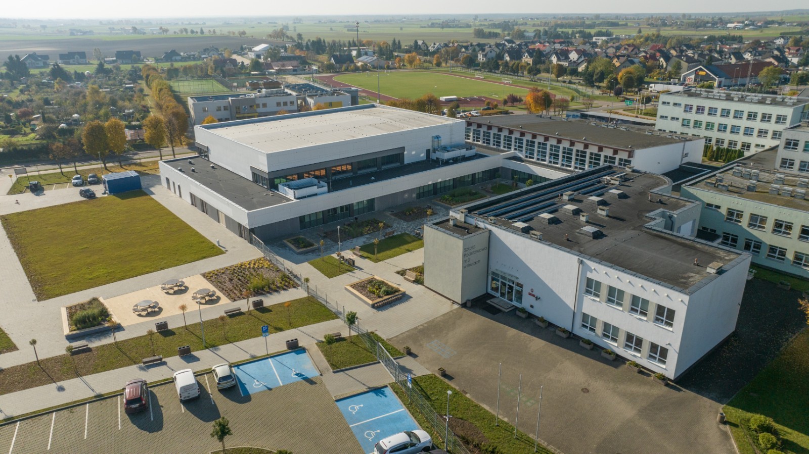 ZAKRES ZADANIA: budowa nowoczesnej hali sportowo - widowiskowej połączonej z istniejącym kompleksem oświatowym, umożliwiającej różne formy aktywności fizycznej: piłka halowa, siatkowa, koszykowa, ręczna, tenis ziemny oraz dyscypliny lekkoatletyczne. Etap I inwestycji obejmuje: stan surowy zamknięty hali o wym. dł. – 44,36 m; szer. - 23,21 m; wys. - 8,02 m, wykonanie trybun na 250 miejsc siedzących oraz zagospodarowanie terenu w postaci: miejsc postojowych, ciągów pieszych i jezdnych, urządzenia zieleni wraz z nasadzeniami oraz małą architekturą. Etap II dotyczy robót wykończeniowych wewnętrznych, instalacji sanitarnych, elektrycznych i niskoprądowych, wykonania elewacji i zakupienia wyposażenia.