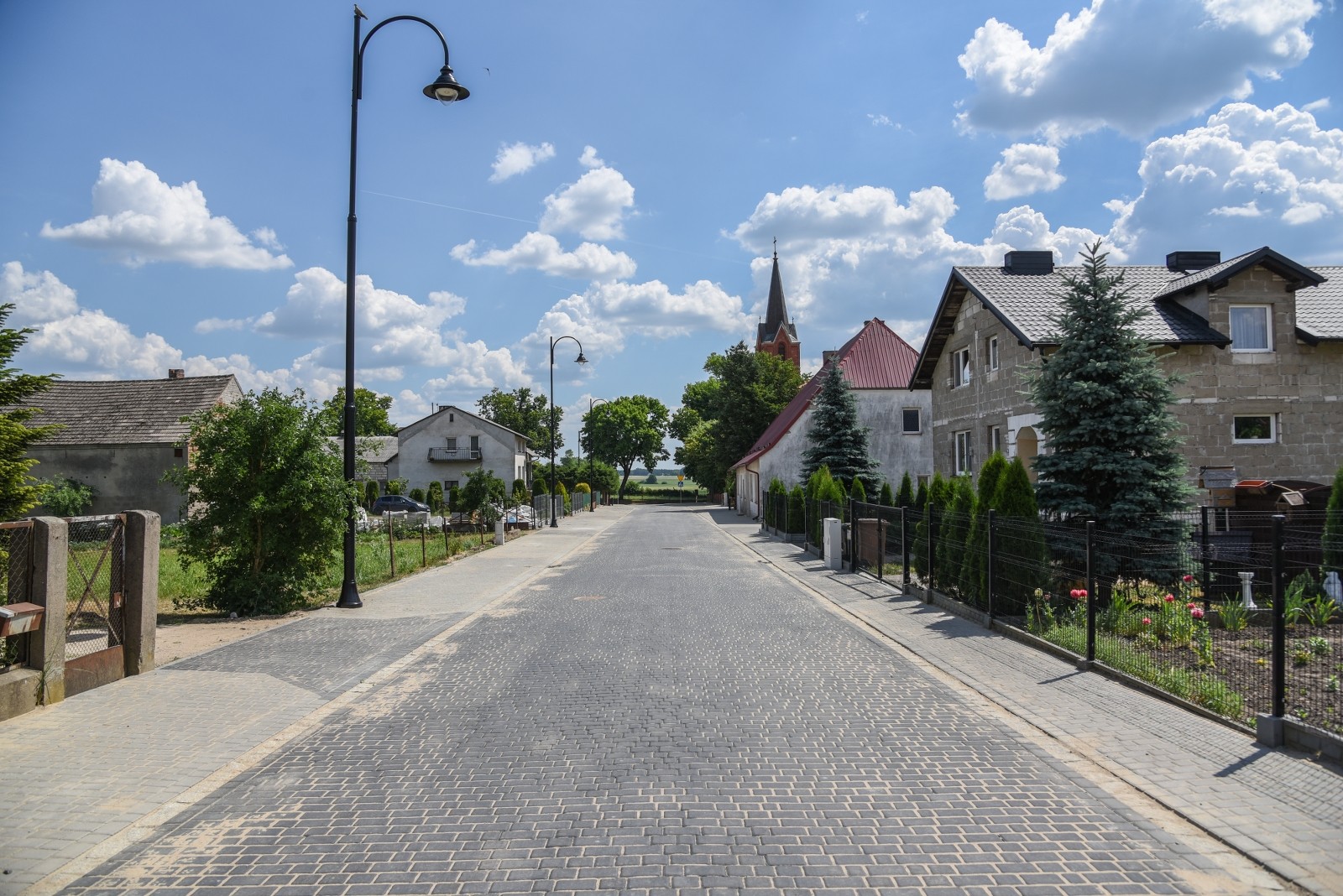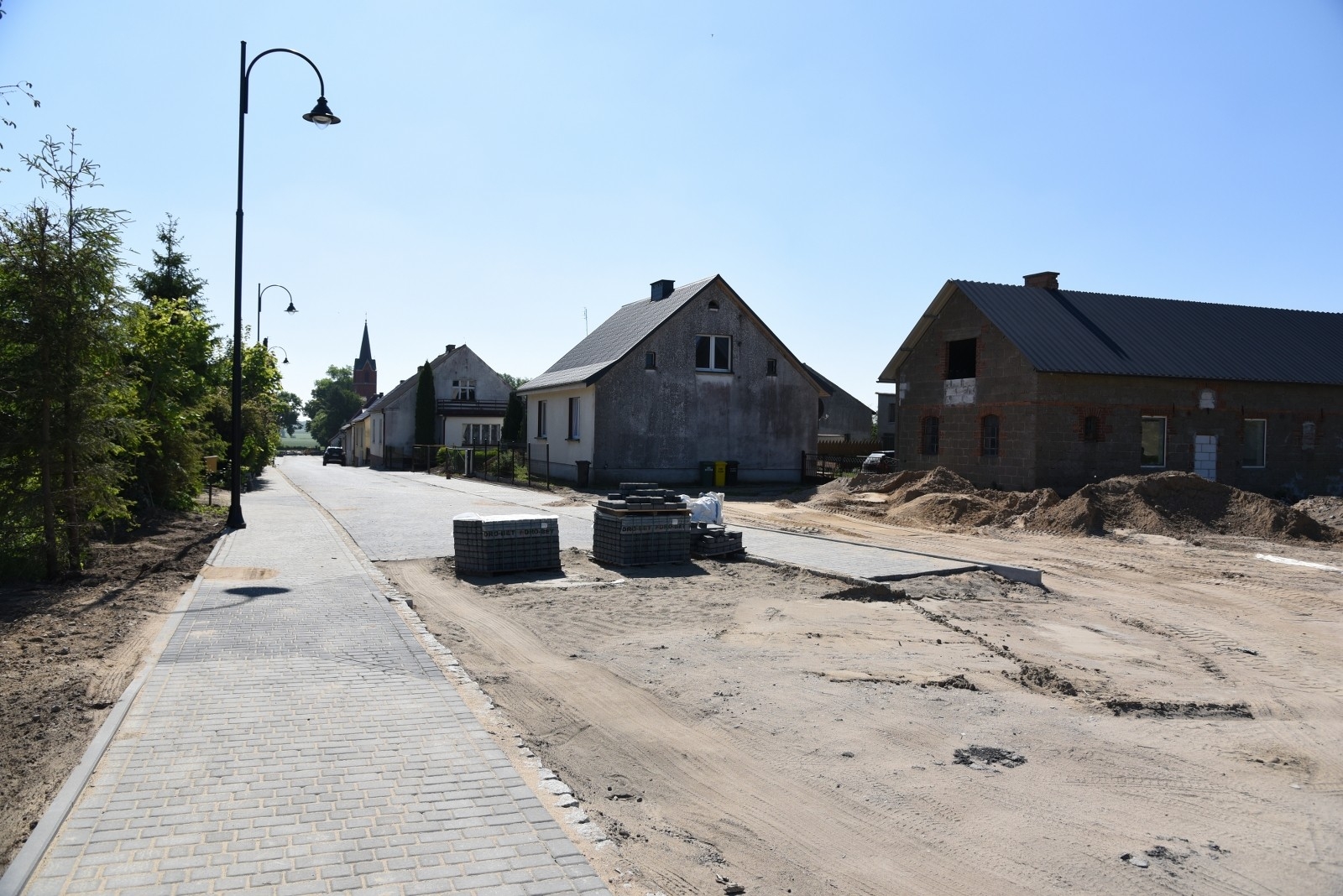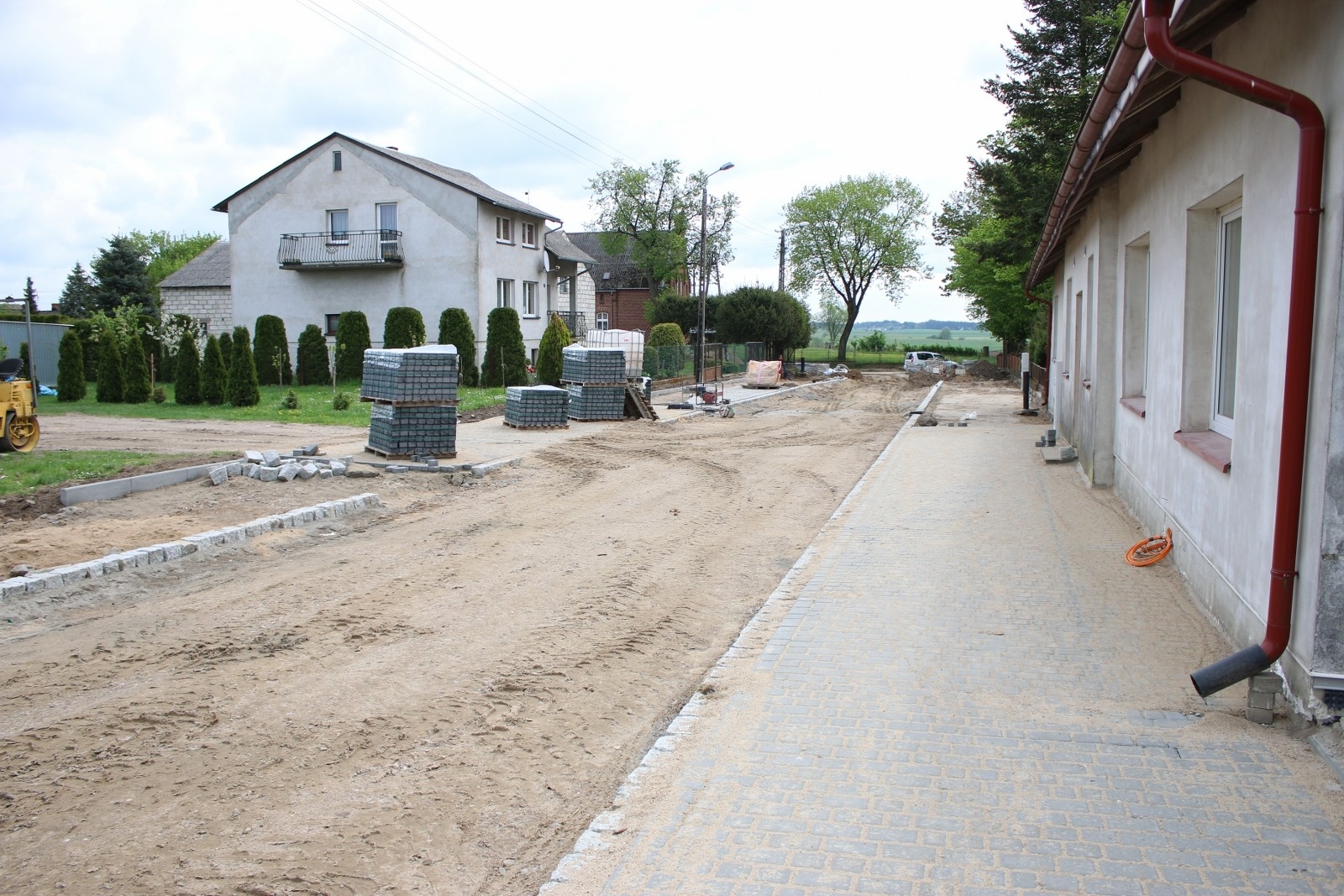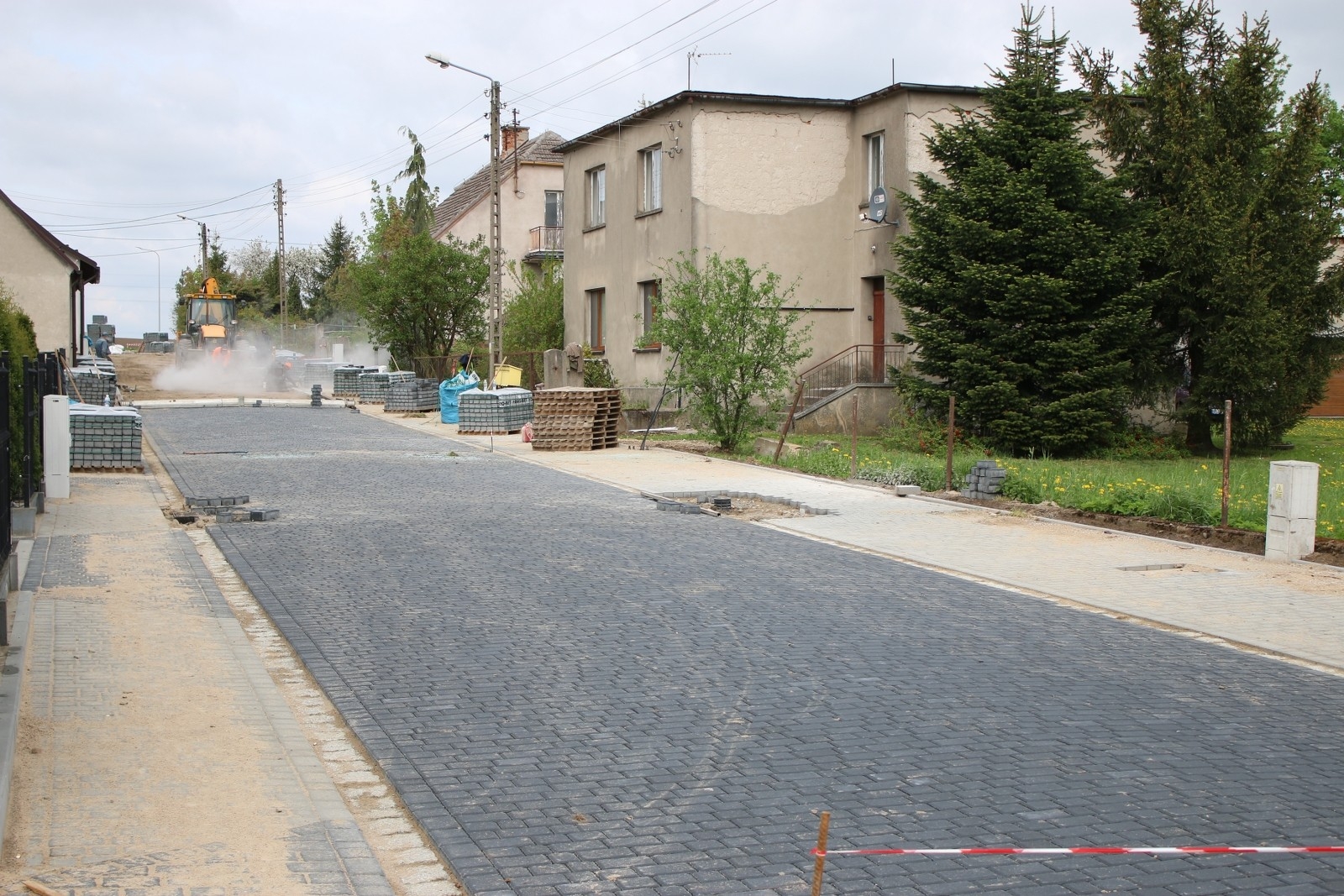 ZAKRES ZADANIA: Budowa ulicy o nawierzchni z kostki betonowej o długości 257m, w tym szerokość jezdni 5,0m, obustronna opaska/pobocze z kostki betonowej szerokości min. 1,0m, oświetlenie drogowe, odwodnienie i oznakowanie pionowe.