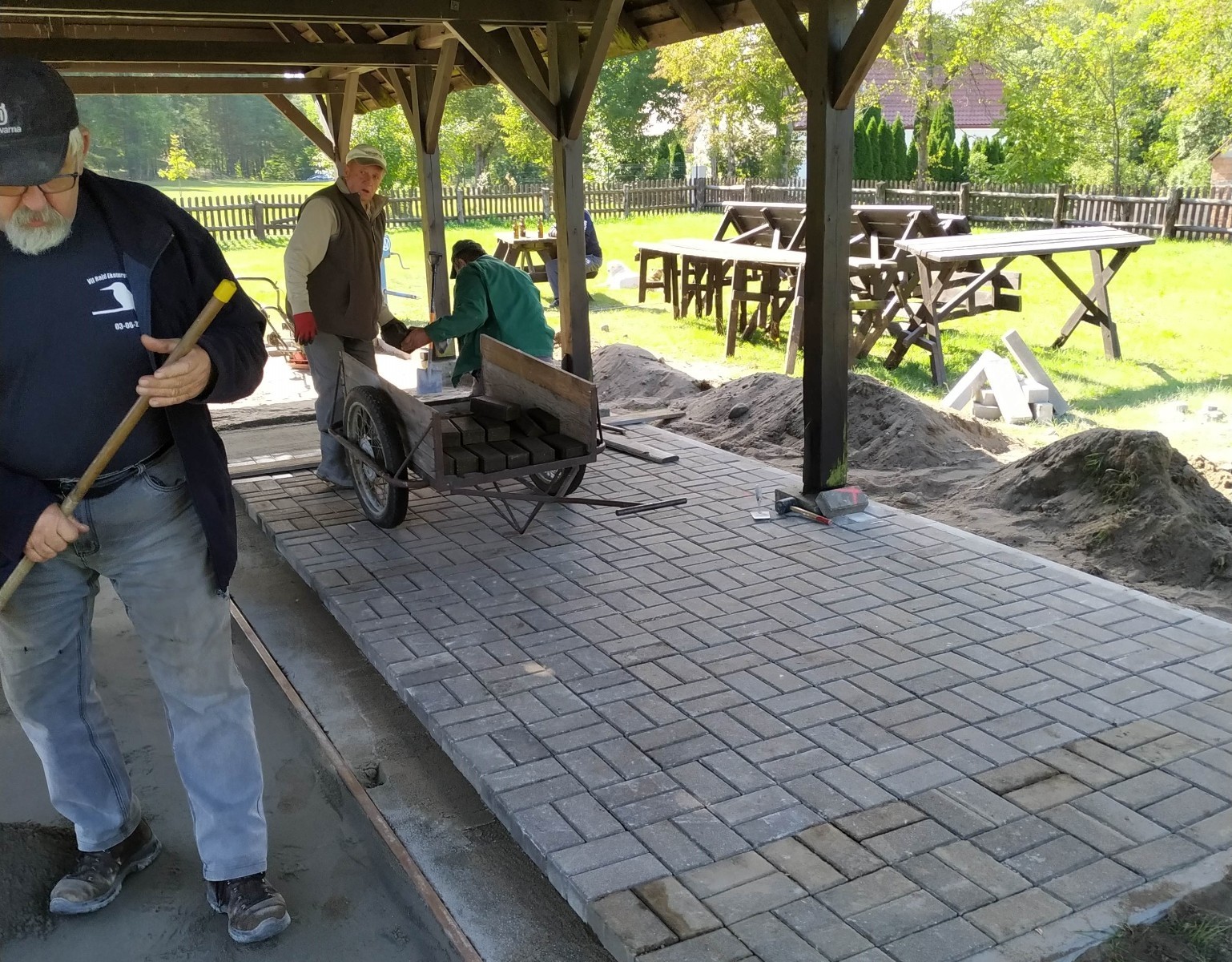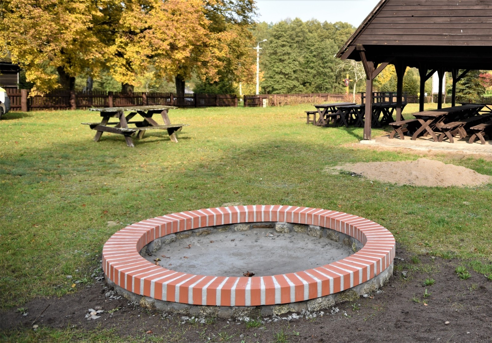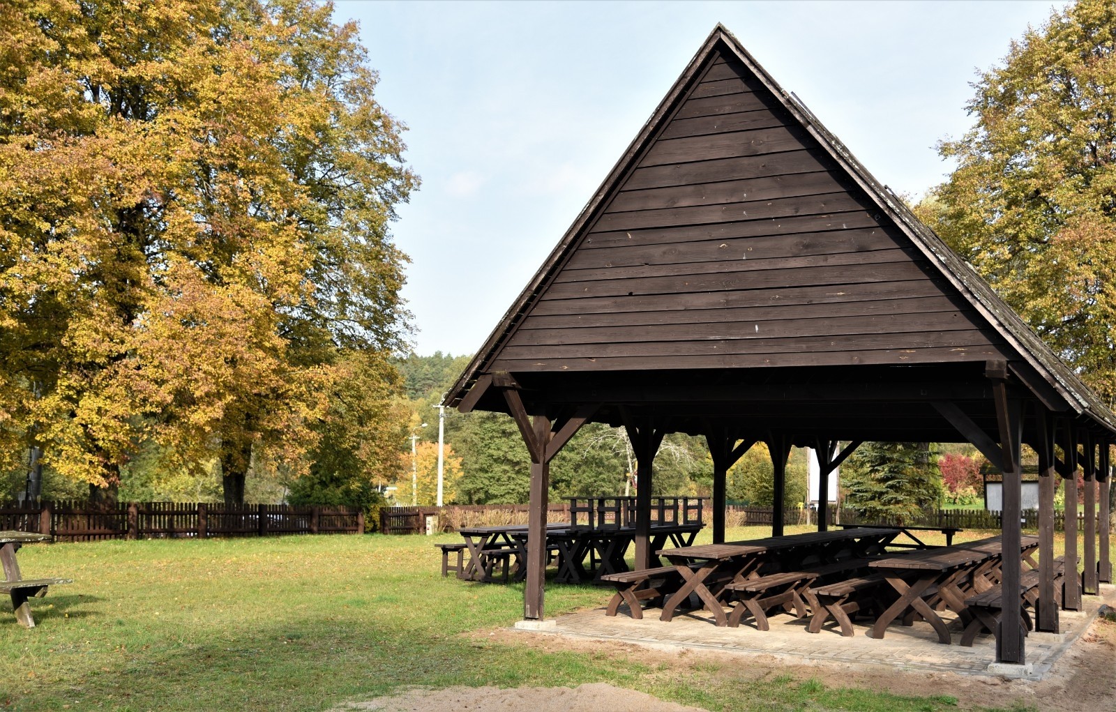ZAKRES ZADANIA: Przedsięwzięcie dotyczyło odnowienia istniejących elementów małej architektury na "placu chlebowym" w Widnie (wiata, ławki, ogrodzenie), doposażenia terenu w nowe elementy (miejsce na ognisko, dodatkowe stoły i ławki), utwardzenia terenu pod istniejącą wiatą i nowych nasadzeń zieleni.