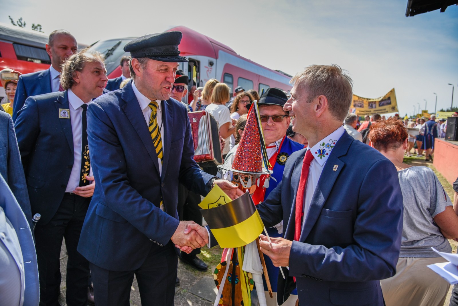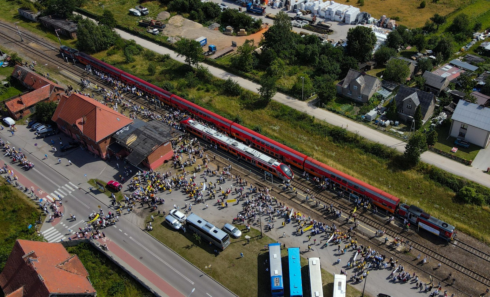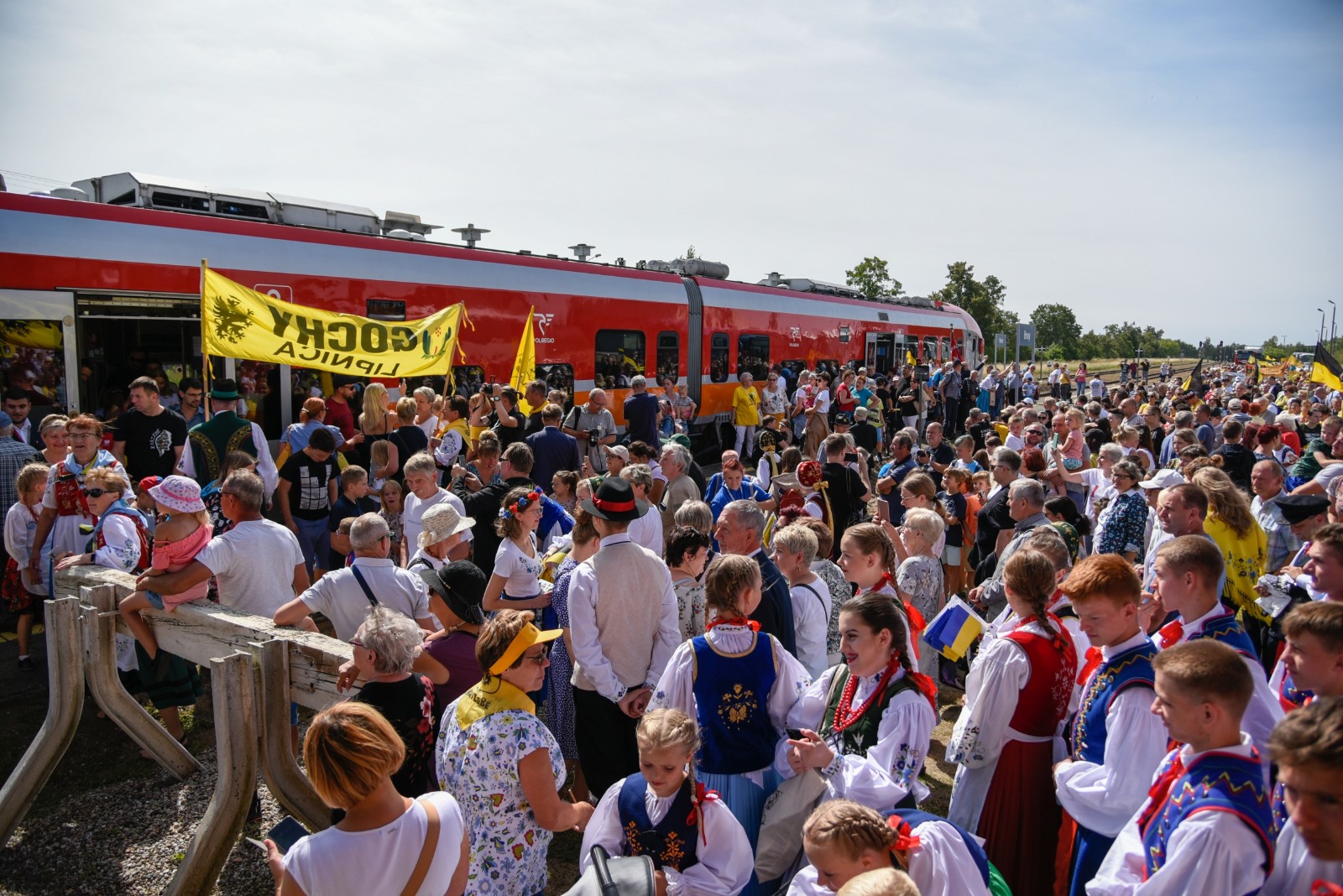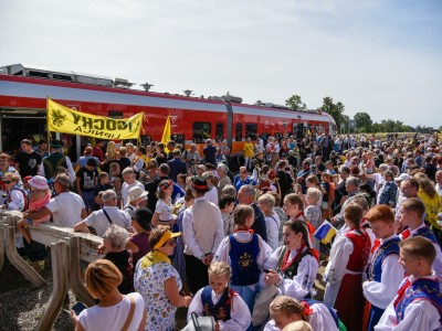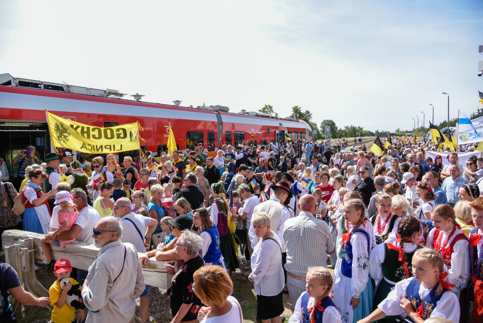 Gro osób dotarło na miejsce pociągiem Transcassubia. Tym razem przyjechały aż dwa składy, z Gdyni i Chojnic. Następnie barwnym korowodem udano się do Kościoła pw. Wszystkich Świętych, gdzie pod przewodnictwem biskupa pelplińskiego Ryszarda Kasyny, została odprawiona uroczysta msza w intencji Kaszubów i Ukraińców.