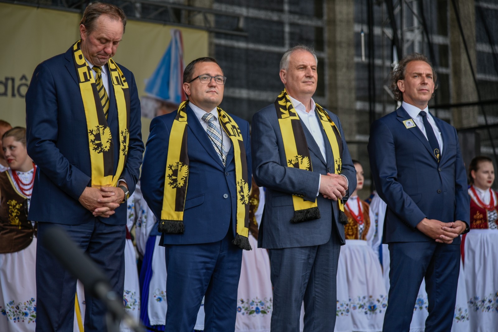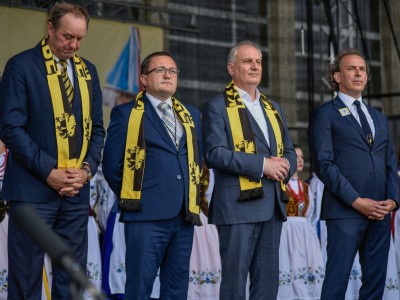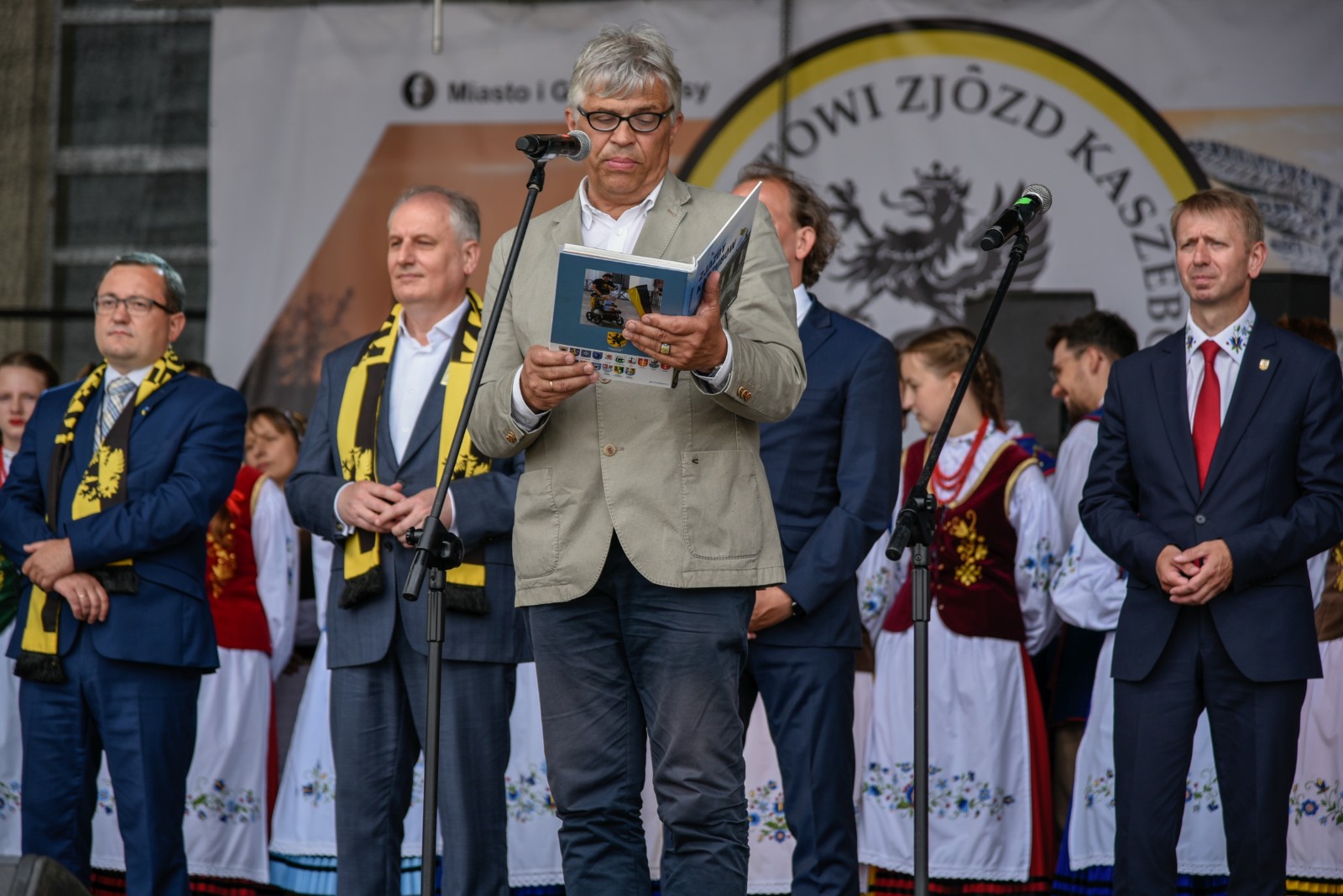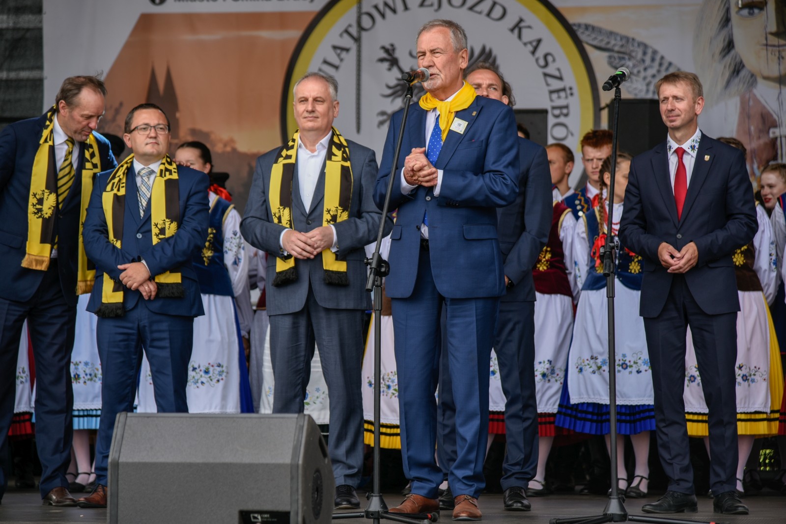 Główny plac zjazdowy znalazł swoje miejsce przy kompleksie szkół. Na scenie odśpiewano hymn Polski i Kaszub oraz uroczyście powitano wszystkich uczestników. Słowa serdeczności wobec przybyłych Kaszubów skierowali organizatorzy: Witold Ossowski, Burmistrz Brus, Marek Szczepański, Starosta Powiatu Chojnickiego i Jan Wyrowiński, Prezes Zrzeszenia Kaszubsko-Pomorskiego oraz patroni honorowi zjazdu: listownie Jarosław Sellin, Wiceminister Kultury i Dziedzictwa Narodowego, Dariusz Drelich, Wojewoda Pomorski, Mieczysław Struk, Marszałek Województwa Pomorskiego i Oleksandr Plodystyi, Konsul Generalny Ukrainy w Gdańsku. Przekazana została także klëka - symbol organizatora zjazdu, którą wręczono Mieczysławowi Gołuńskiemu, burmistrzowi Kartuz. W tej gminie odbędzie się zjazd w 2023 roku.