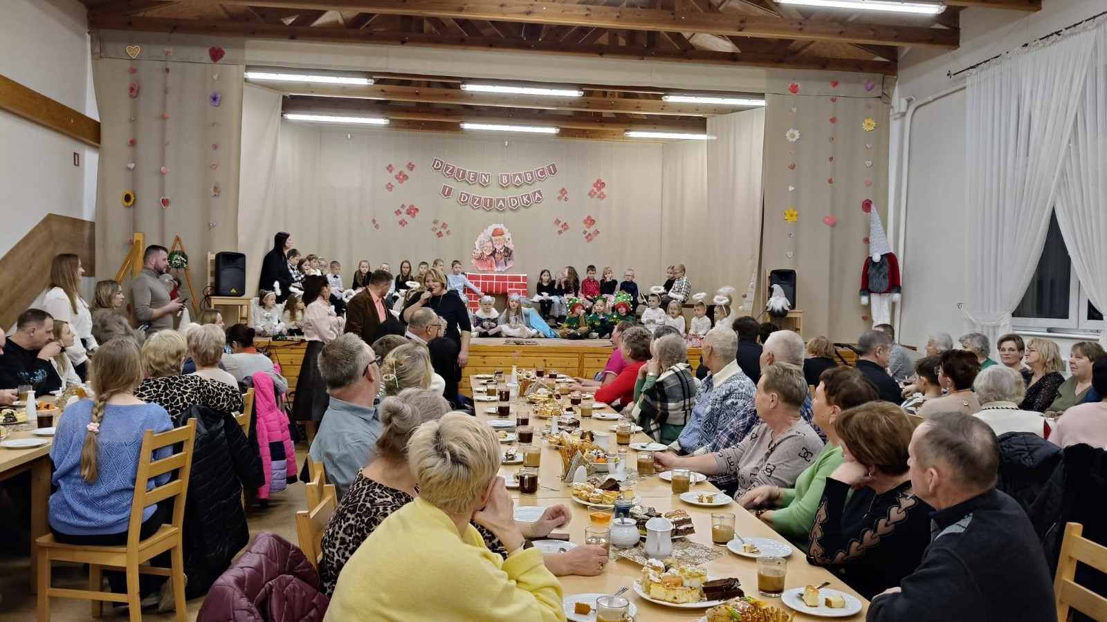 Podczas uroczystości najmłodsi uczniowie zaprezentowali program artystyczny i wręczyli babciom oraz dziadkom upominki. Wspomniano także, w krótkiej modlitwie, zmarłych mieszkańców sołectwa. Szczególnym momentem było uhonorowanie seniorki posiadającej najliczniejsze grono wnuków i prawnuków – pani Teresy Januszewskiej, która ma ich łącznie 45.