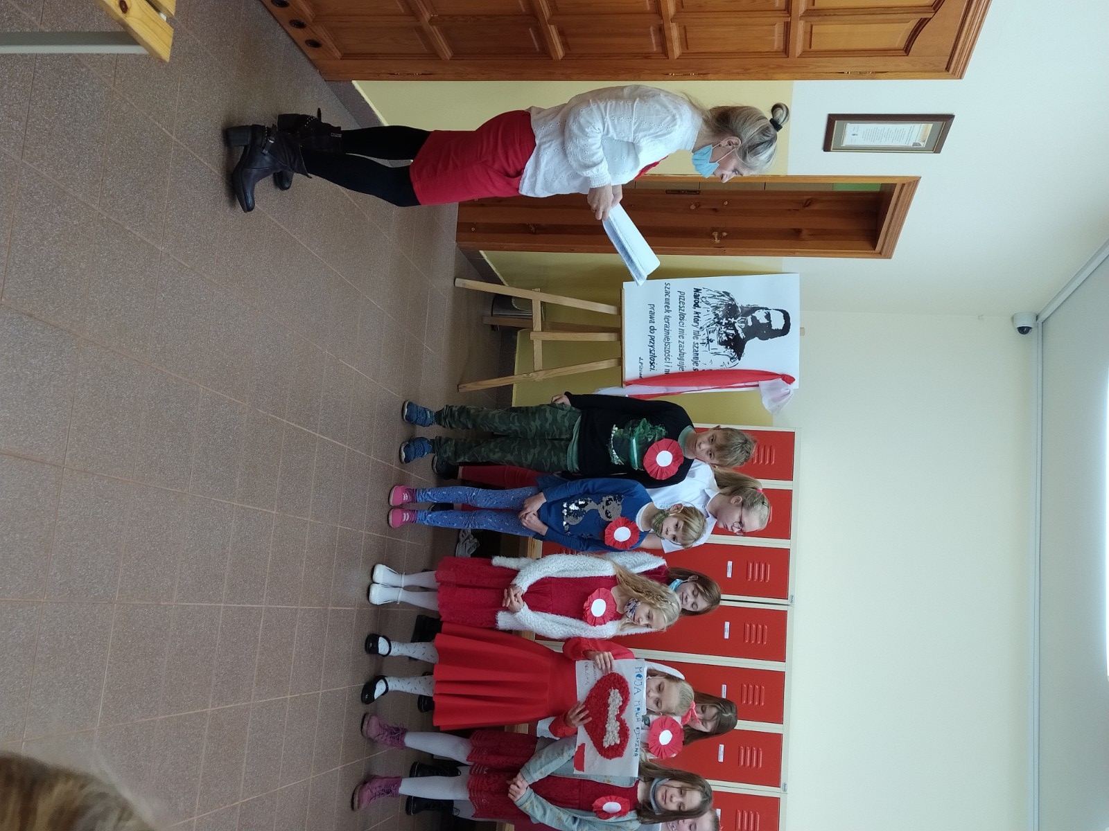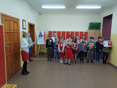 Dnia 6 listopada 2020r. uczniowie klasy trzeciej wraz z wychowawczynią Heleną Blech przygotowali uroczysty apel z okazji Dnia Niepodległości. Obchody narodowego święta – ze względu na panującą pandemię – odbyły się wcześniej. Uczniowie przygotowali i przedstawili montaż słowno-muzyczny upamiętniający 102 rocznicę odzyskania przez Polskę niepodległości. Dzięki wierszom i pieśniom patriotycznym przybliżyli oni młodszym kolegom i koleżankom trudną tematykę historyczną naszego narodu oraz sylwetkę ojca polskiej niepodległości, Józefa Piłsudskiego.