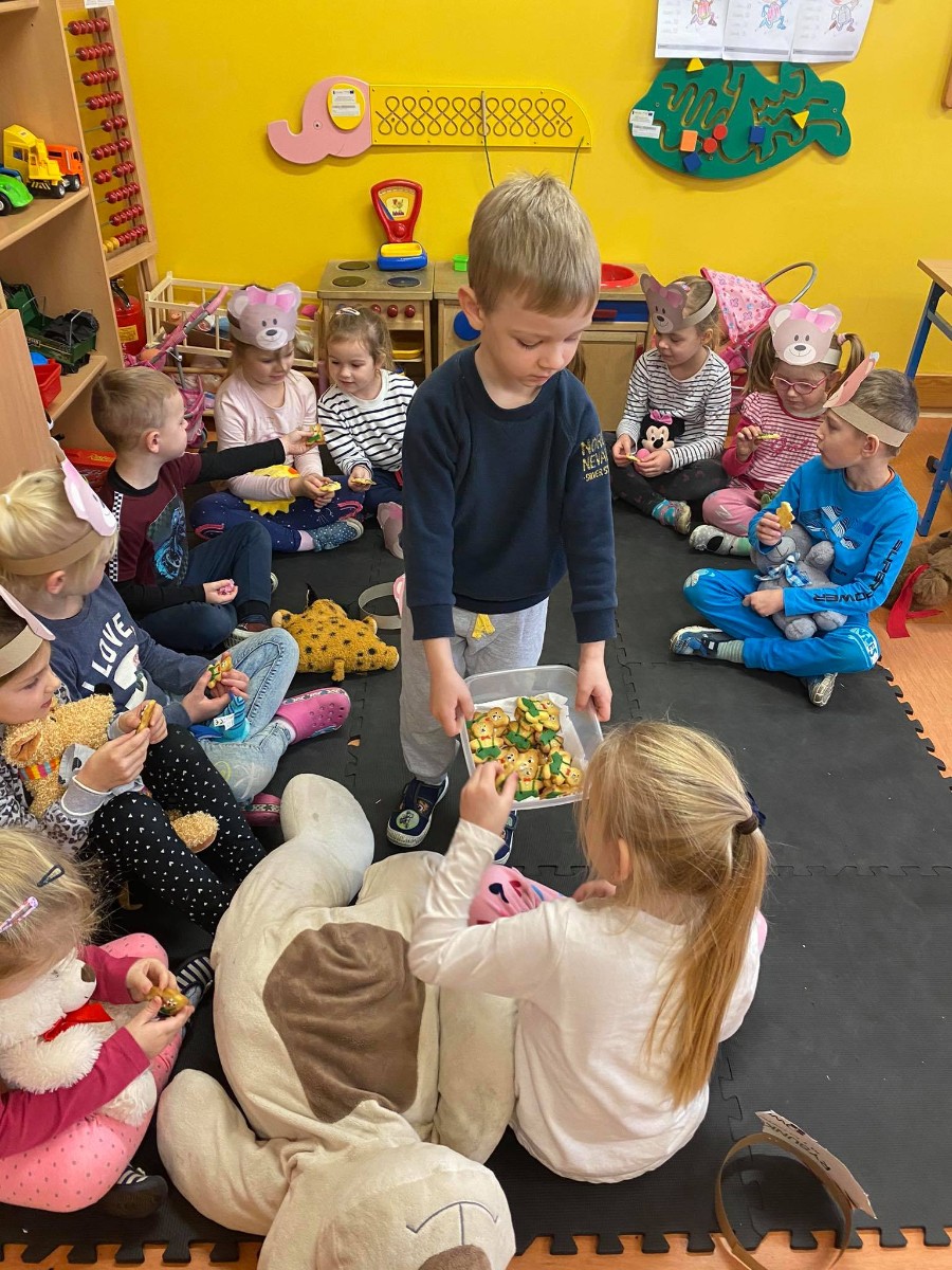 Duże , małe, kolorowe, puchate i mięciutkie. 25 listopada dzieci przybyły do przedszkola ze swoim przyjacielem- misiem, aby bawić się, uczyć i świętować. Przedszkolaki zostały zaproszone do wspólnej zabawy w misiowej krainie. Poznały historię Święta Pluszowego Misia, wspólnie bawiły się przy piosenkach m. in: „ Jadą, jadą misie”, „Misiowa pobudka”, „Pluszowy miś”. Dla dzieci w tym dniu przygotowano wiele atrakcji: zabawy ruchowe, plastyczne, quizy i misiowe tańce. W tym magicznym dniu nawet mama Wojtusia upiekła przepyszne, misiowe ciasteczka. Ten dzień z pewnością był niezapomniany i pluszowy. Do zobaczenia za rok.