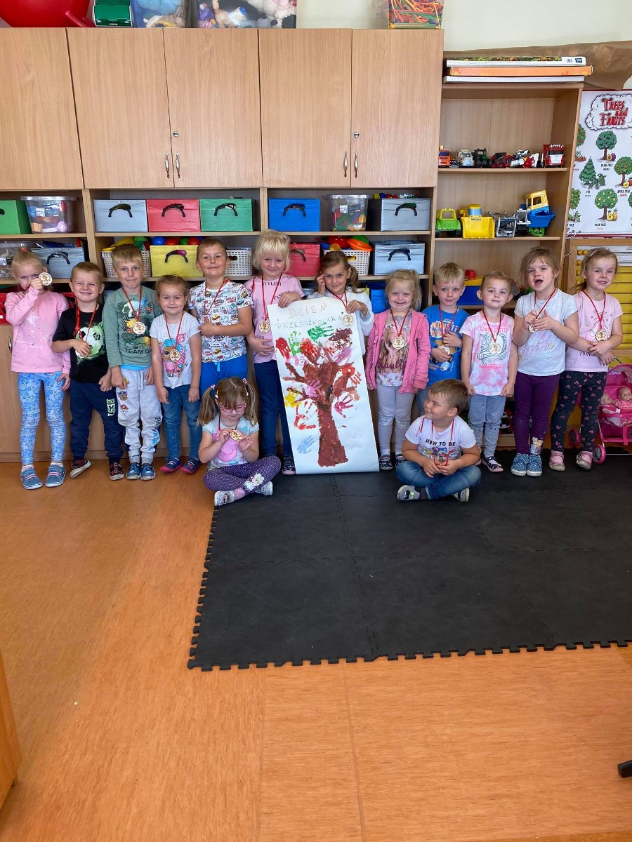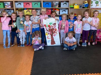 20 września każdy przedszkolak ma swoje święto. W tym roku przypadł w niedzielę więc dzieci świętowały go w poniedziałek, 21 września. Dzieci z Czapiewic uczestniczyły we wspólnych zabawach ze śpiewem oraz z wykorzystaniem chusty animacyjnej. Wspólnie wykonały pracę plastyczną pt.,, Drzewko przyjaźni”, odciskając swoją dłoń, po ówczesnym pomalowaniu jej farbą. Na koniec każdy dzielny przedszkolak otrzymał medal, który zakupili rodzice. Nie zabrakło uśmiechu, radości oraz słodkości. Taki dzień mógłby być zawsze. Do zobaczenia za rok.