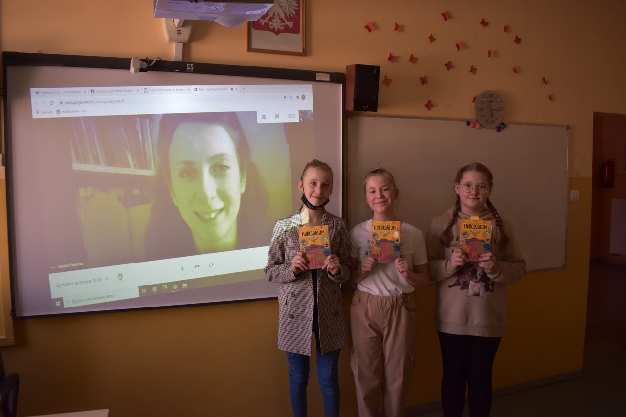 25 lutego 2021 roku w Szkole Podstawowej w Leśnie odbyło się spotkanie autorskie z pisarką p. Ariadną Piepiórką oraz podsumowanie konkursu pisarskiego na motywach utworu pt. "Horologium, czyli dom niezwykłych zegarów". Zainteresowani czytelnicy mogli zobaczyć autorkę dzięki połączeniu on-line, zadać pytania dotyczące inspiracji twórczych, pomysłów na kolejne dzieła, początków pisania oraz m.in. tego, jak wybrać swoją przyszłą zawodową drogę.