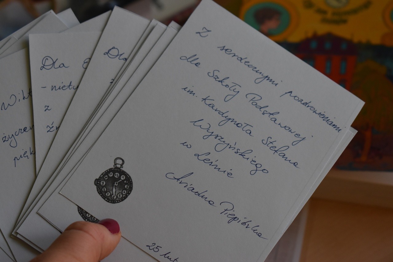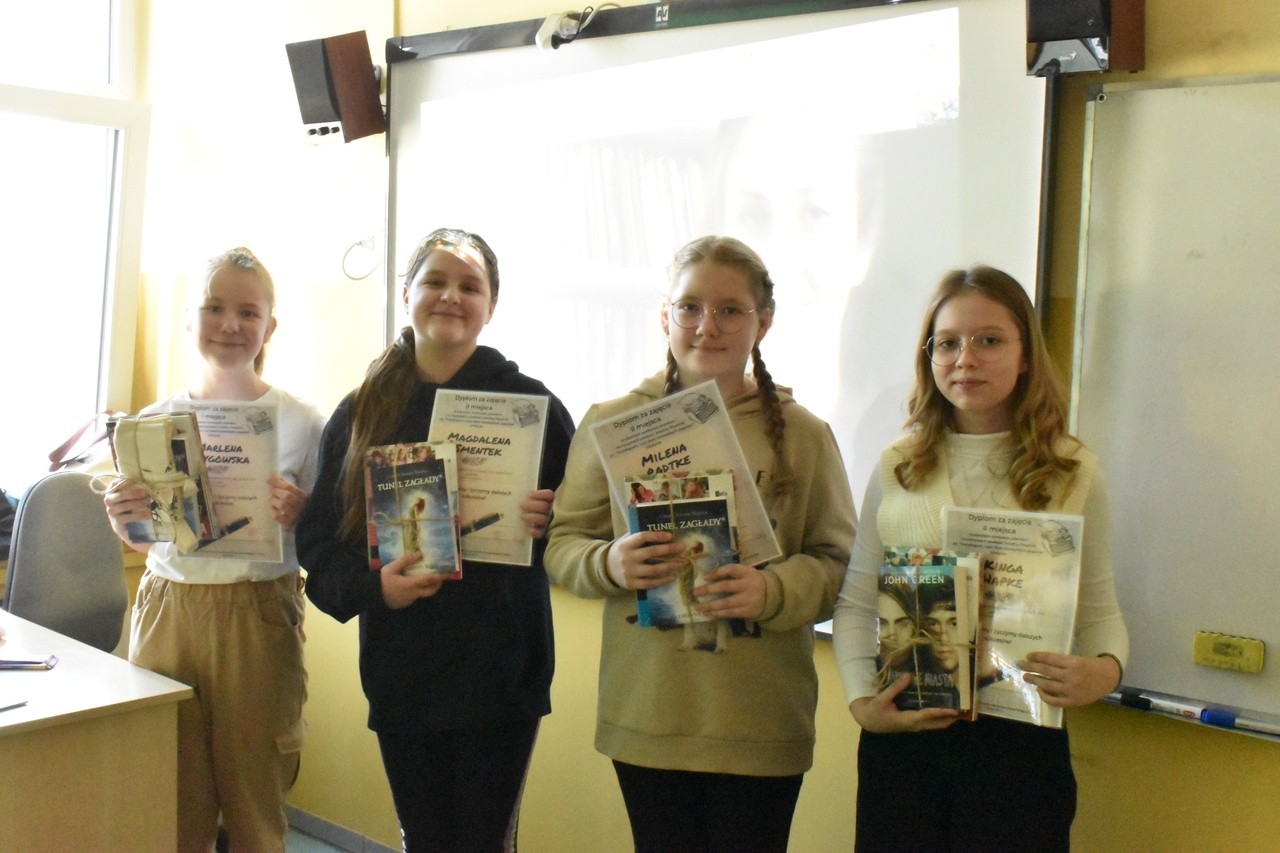 Po części dyskusyjnej uczniowie otrzymali oryginalne autografy, które pisarka przesłała na adres naszej szkoły. Nastąpiło również ogłoszenie wyników konkursu pisarskiego, który polegał na napisaniu wypracowania związanego z fabułą przeczytanej baśni pani Piepiórki. Organizatorki wydarzenia, polonistki: Ewelina Mikołajczyk oraz Sylwia Pluto-Prondzinska przedstawiły następujące wyniki: