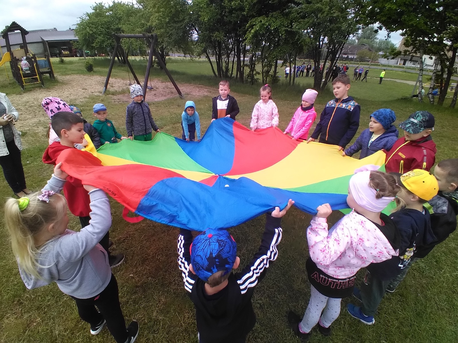 Gdy pogoda poprawiła się, reszta atrakcji mogła odbyć się na świeżym powietrzu. A były to: ognisko z pieczeniem kiełbasek, zawody sprawnościowe, mecz piłki nożnej… Każdy z uczestników konkursów otrzymał nagrodę – upominek. Dzień Dziecka mógł być zorganizowany dzięki pomocy naszych stałych przyjaciół – Rady Rodziców, Pań z Koła Gospodyń Wiejskich w Zalesiu oraz Pani Radnej – Emilii Warnke.