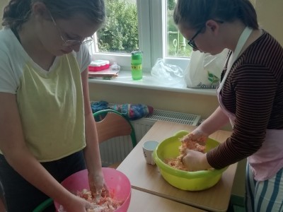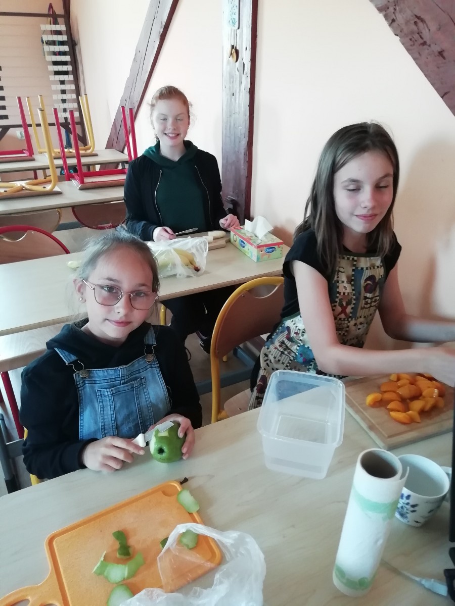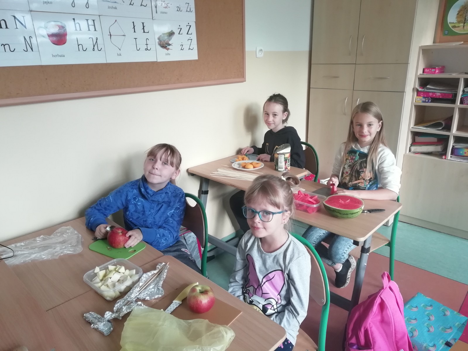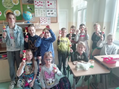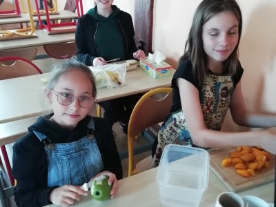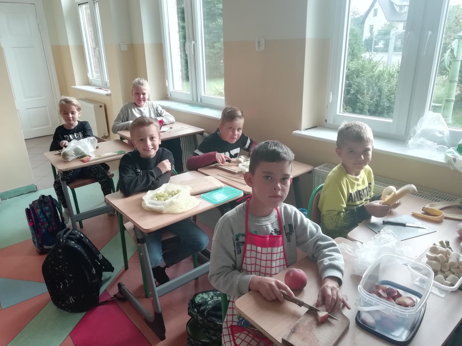 Brzôd i ògardowizna – te tajemniczo brzmiące słowa, to po prostu w języku kaszubskim owoce oraz warzywa i właśnie takim tematem zajmowaliśmy się na kilku lekcjach języka kaszubskiego. Najpierw uczniowie poznali nazwy różnych owoców i warzyw, żeby później zrobić z nich smakołyki. Dzieci z grupy młodszej robiły szaszłyki owocowe zaś z grupa starsza zrobiła sałatkę owocową oraz pyszne, pachnące rogaliki marchewkowe, na które przepis był oczywiście w języku kaszubskim.