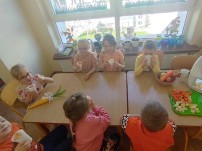 4 kwietnia w Naszym przedszkolu obchodziliśmy Dzień Marchewki. W tym dniu dzieci i Panie przyszły do przedszkola ubrane na pomarańczowo. Przedszkolaki poznały zalety i walory marchewki oraz mogły się dowiedzieć wiele ciekawych rzeczy: jak bardzo jest zdrowa, zawiera wiele cennych witamin i składników odżywczych, korzystnie wpływa na skórę, włosy oraz wzrok. Jak się okazuje z marchewki można zrobić też dżem, sok i upiec marchewkowe ciasto. Ten „bardzo zdrowy dzień pomarańczowy” wypełniony był zabawami przy piosenkach o marchewce, pracami plastycznymi oczywiście o marchewce, chrupaniem surowych marchewek oraz próbowaniem marchewkowego soku. Na koniec odbyła się super marchewkowa sesja zdjęciowa z marchewkami w roli głównej.