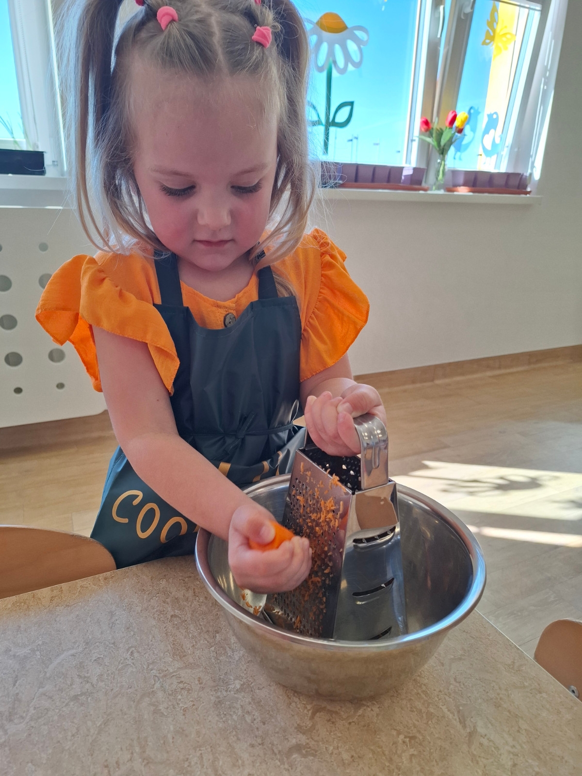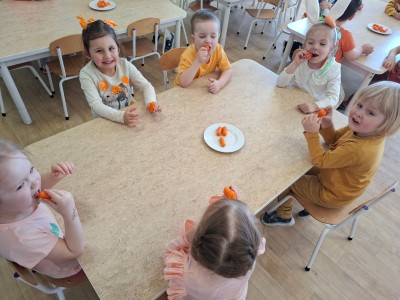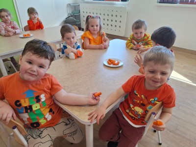 4 kwietnia wszystko w Przedszkolu nr 1 zrobiło się pomarańczowe... A przyczyną tego był Dzień Marchewki. Marchewka jest warzywem bogatym w witaminy, minerały i błonnik. Uczciliśmy jej dzień biorąc udział w marchewkowych zabawach ruchowych, zajadając się przysmakami z niej zrobionymi oraz królując w jej cudownym kolorze pomarańczowym. Zrobiliśmy również pyszną surówkę marchewkową. Dzięki takim dniom promujemy zdrowy styl życia oraz uświadamiamy znaczenie spożywania warzyw.