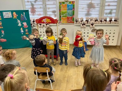 W ramach realizacji projektu „Gmina Brusy stawia na przedszkolaków” w grupie Krasnoludki z Przedszkola nr 1 w Brusach dzieci zaznajamiały się z tematyką teatru. Miały okazję oglądać teatrzyki w wykonaniu nauczycielki, m.in. wiersza „Pomidor” Jana Brzechwy, czy bajki „Czerwony Kapturek”. Dzieci wykonywały rekwizyty do przedstawienia a także same występowały w przedstawieniach wykorzystując m.in. drewnianą scenę i kukiełki otrzymane w ramach projektu.