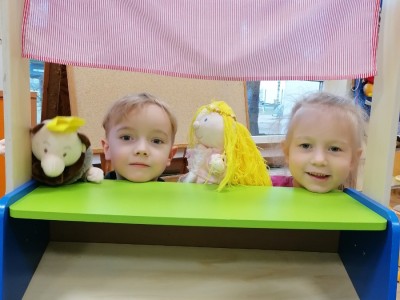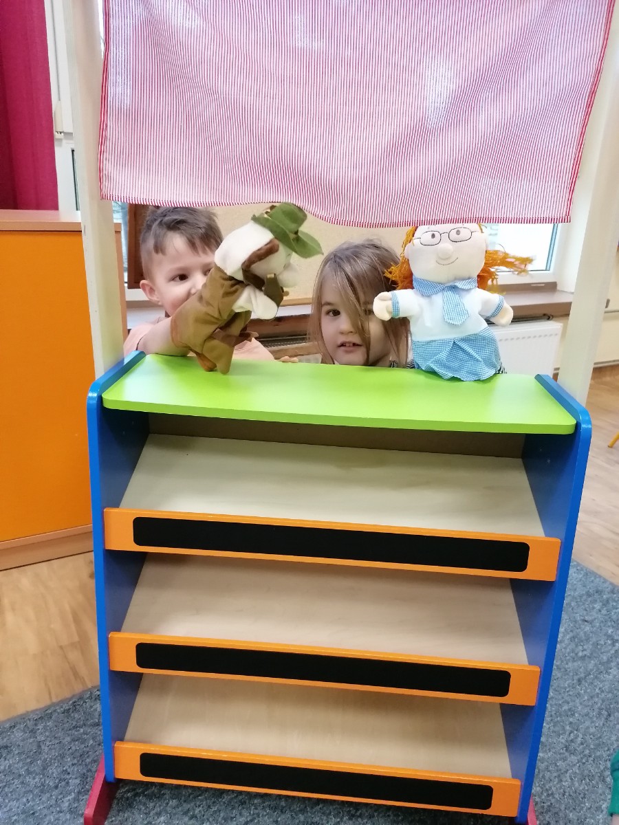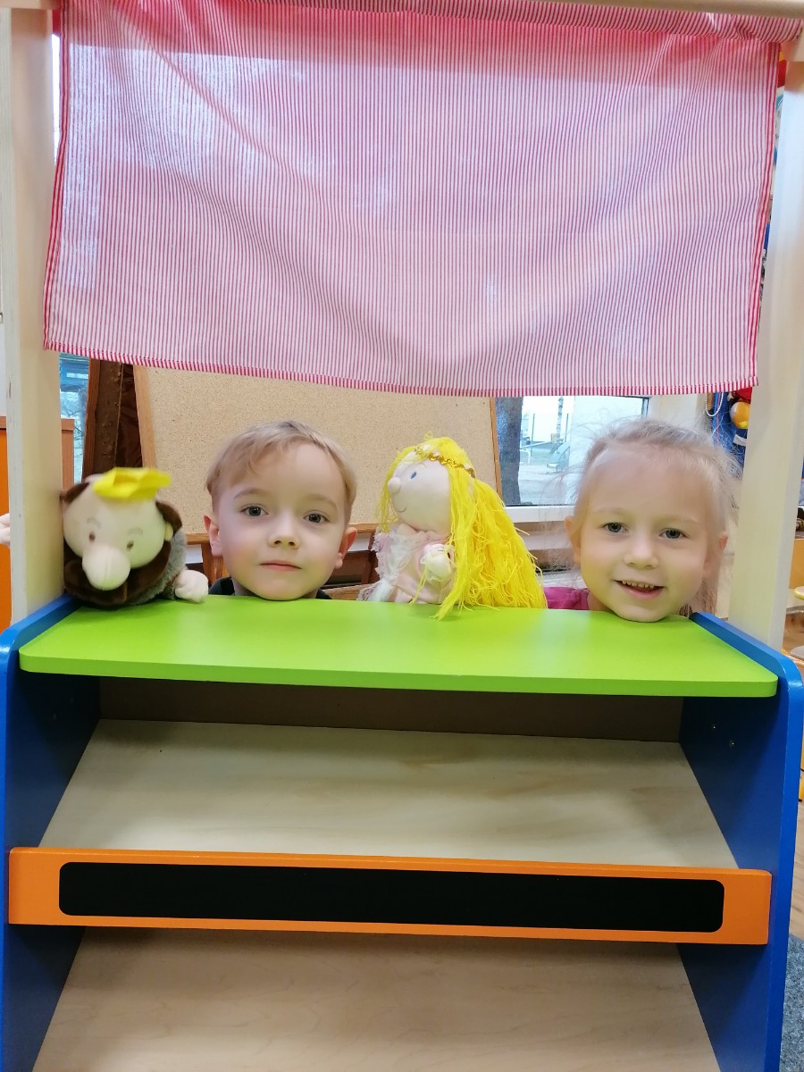 Zajęcia teatralne z użyciem pacynek w ramach zajęć "Gmina Brusy stawia na przedszkolaka", to świetna forma pokonywania nieśmiałości wśród dzieci oraz świetna zabawa na rozwijanie wyobraźni.