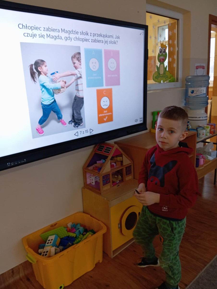 W ramach projektu „Gmina Brusy stawia na przedszkolaków” dzieci mają okazję uczestniczyć w zajęciach z Kompetencji Społecznych. Podczas tych zajęć, dzieci uczą się rozpoznawać, nazywać i kontrolować swoje emocje. Dowiadują się jak ważny jest szacunek, akceptacja oraz współpraca z drugim człowiekiem. Szukamy także sposobów efektywnego rozwiązywania problemów. Dzięki tym zajęciom dzieci nabywają pewności siebie. Są to trudne tematy ale bardzo ważne jest, już od najmłodszych lat rozmawiać o emocjach, uczuciach jakie nam towarzyszą.