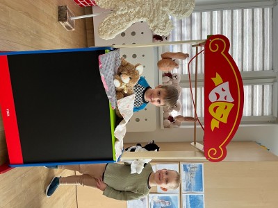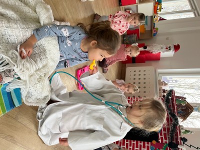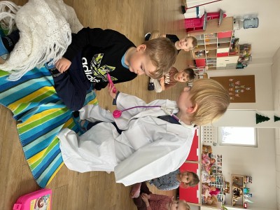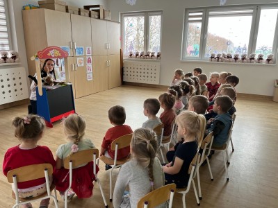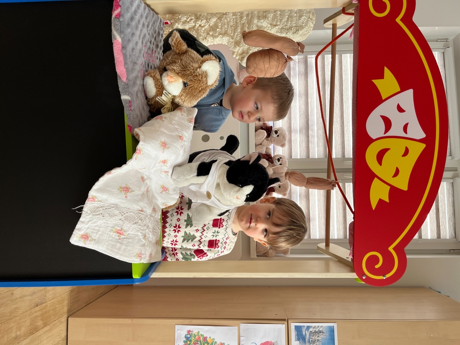 W styczniu w ramach zajęć teatralnych w ramach projektu "Gmina Brusy stawia na przedszkolaków" dzieci z grupy Krasnoludki z Przedszkola nr 1 w Brusach oglądały inscenizację na podstawie wiersza "Chory kotek" w wykonaniu nauczycielki. Następnie same brały udział w inscenizacjach a także w zabawach dramowych inspirowanych przedstawieniem. Wcielając się w rolę chorego i lekarza, który przyszedł do pacjenta, próbowały prowadzić rozmowę. Wykorzystywały przy tym własne doświadczenia z wizyt u lekarza. Zabawa w lekarza i pacjenta bardzo się dzieciom podobała. Podczas inscenizacji wykorzystano scenę teatralną zakupioną w ramach projektu.