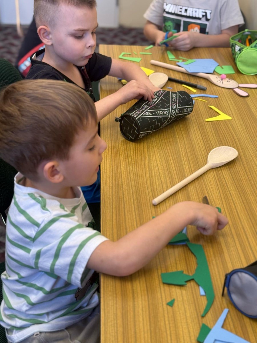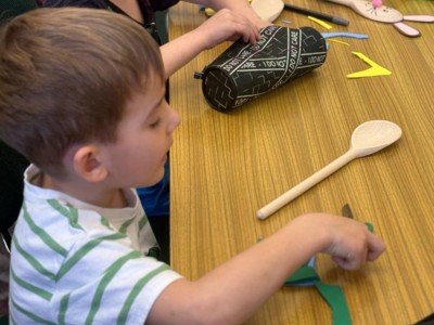 Na ostatnich zajęciach teatralnych dzieci z grupy ŻABKI przybliżyły sobie tematykę nadchodzących Świąt Wielkanocnych. W ramach zajęć wykonały zające wielkanocne z drewnianych łyżek. Dzieci rozwijały w ten sposób motorykę małą, kreatywność i wyobraźnię.