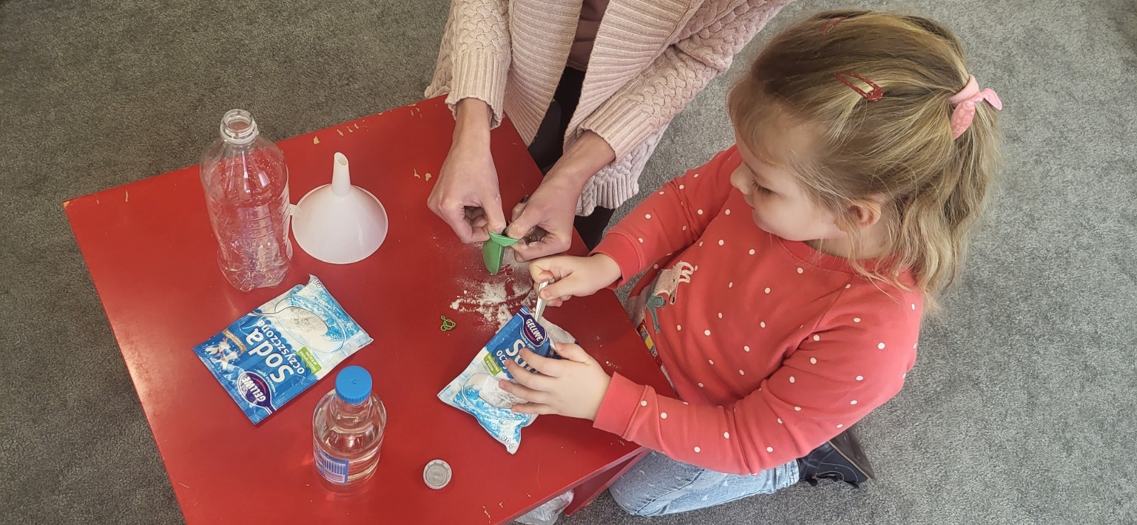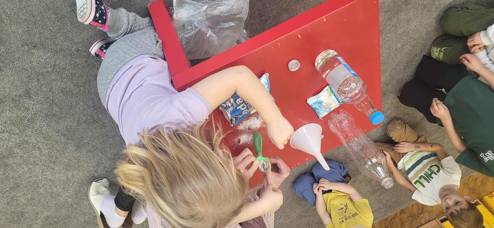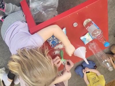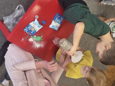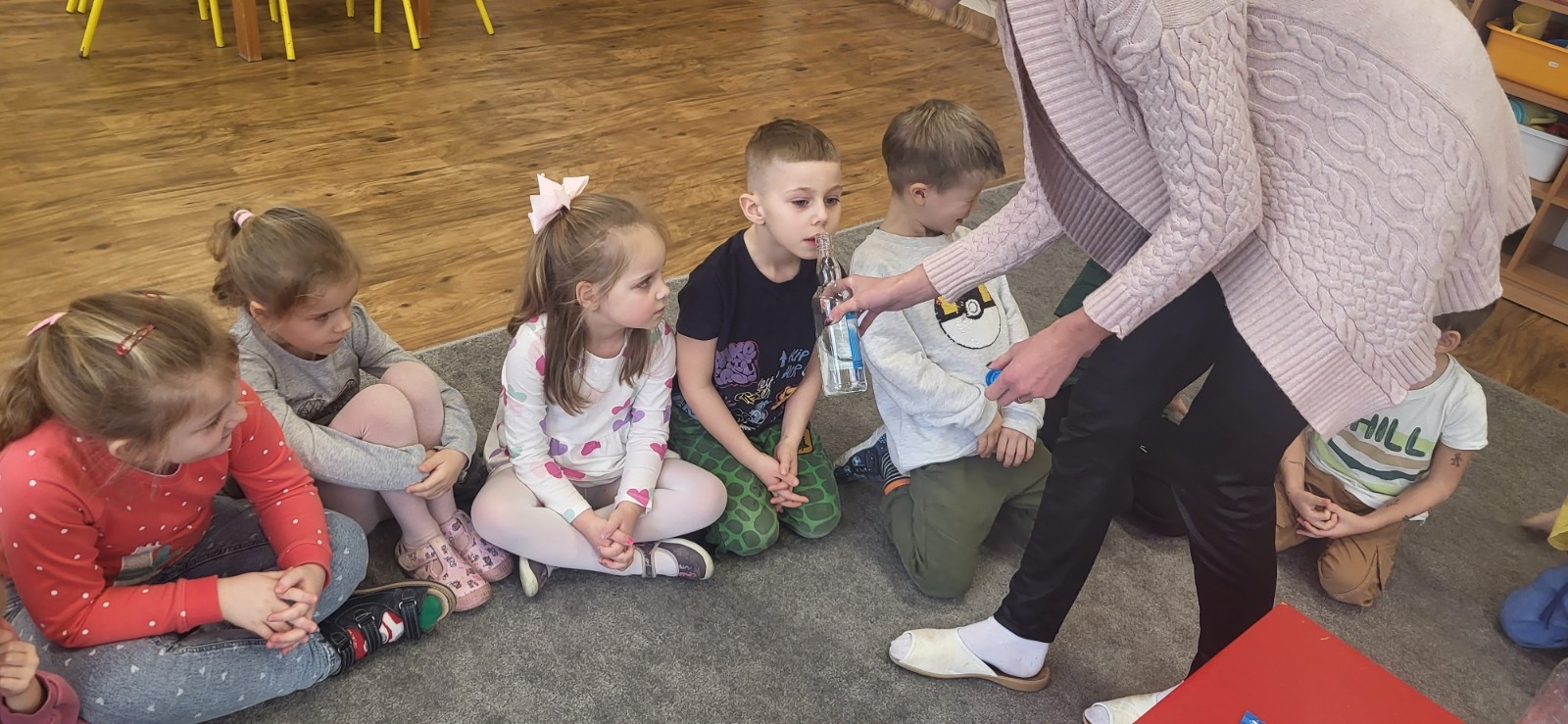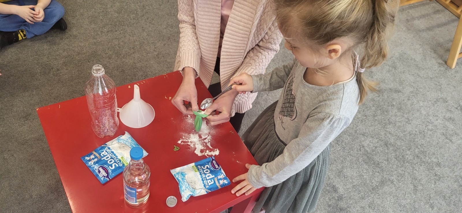 Wykonywanie eksperymentów podczas zajęć sprzyja pracy zespołowej. Przedszkolaki uczą się w ten sposób współpracy, słuchania poleceń nauczyciela, ale przede wszystkim świetnie się przy tym bawią.