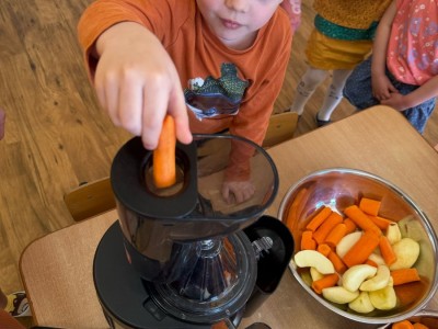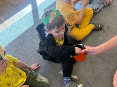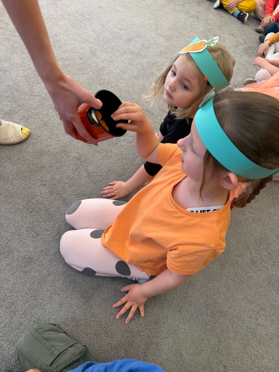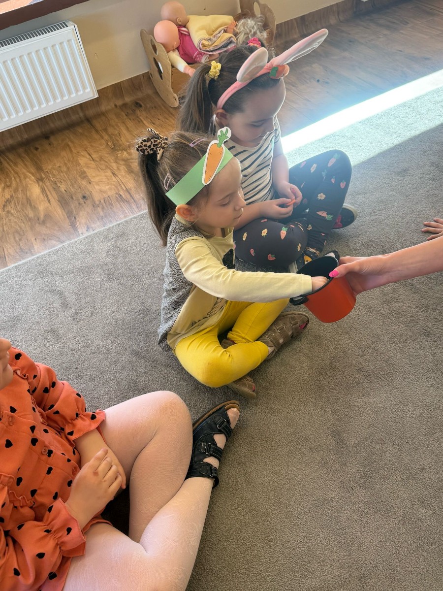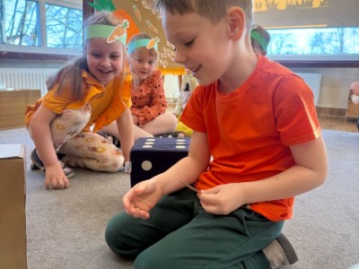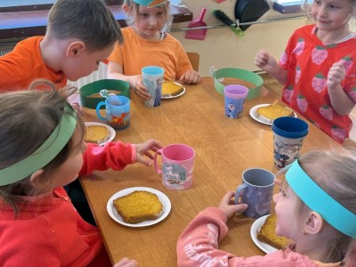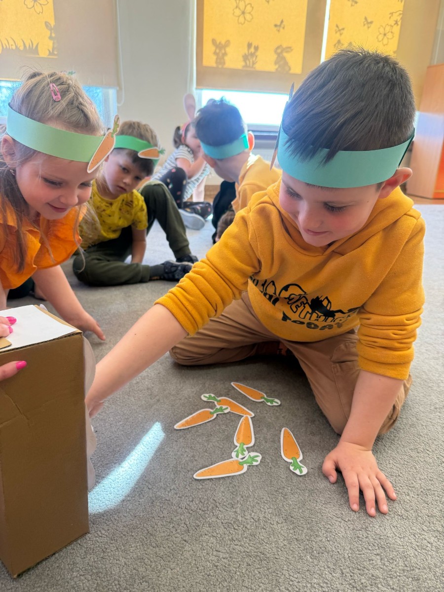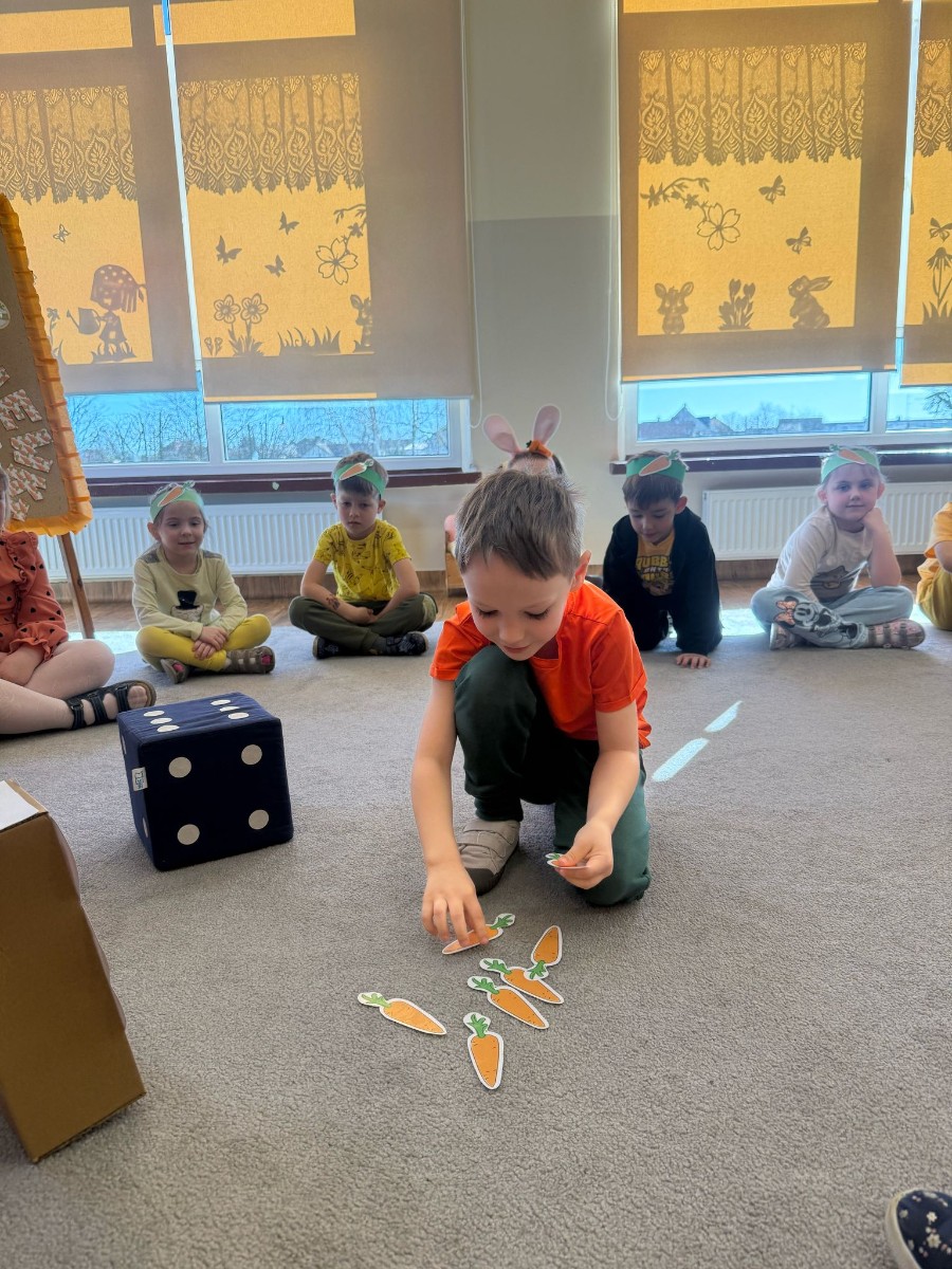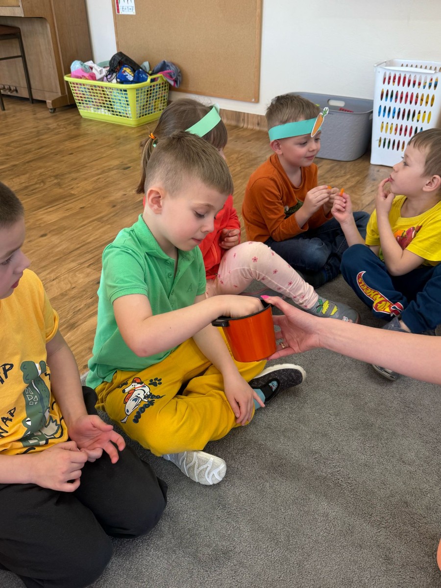 Międzynarodowy Dzień Marchewki obchodzony jest każdego roku 4 kwietnia. Celem Dnia Marchewki jest rozpowszechnianie wiedzy o tych warzywach i o zdrowym stylu życia. Tego dnia również dzieci z naszego przedszkola celebrowały to Święto. Nie zabrakło licznych gier i zabaw o tematyce marchewkowej, ale też strojów w kolorze pomarańczowym. Żabki chętnie słuchały informacji dotyczących pochodzenia święta, "karmiły królika Benia", przeliczały marchewki, smakowały surowego warzywa, wykonywały sok marchewkowo-jabłkowy, by na koniec delektować się nim, zajadając marchewkowe ciasto.