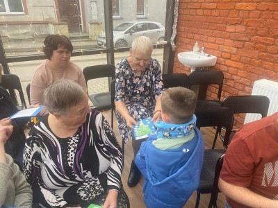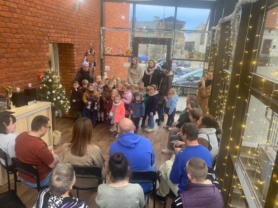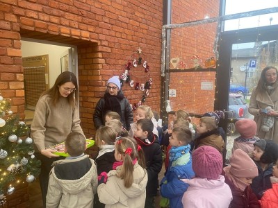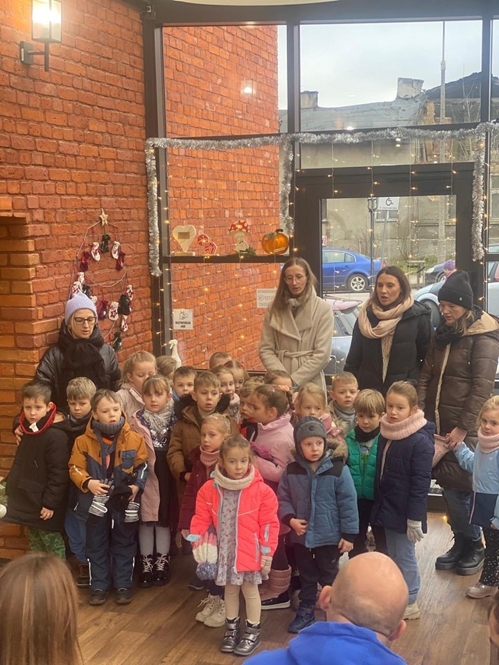 Dzieci zaśpiewały kolędy oraz wręczyły wszystkim własnoręcznie wykonane kartki świąteczne.