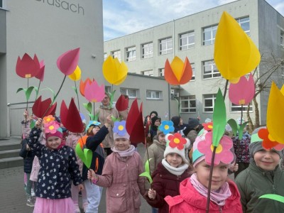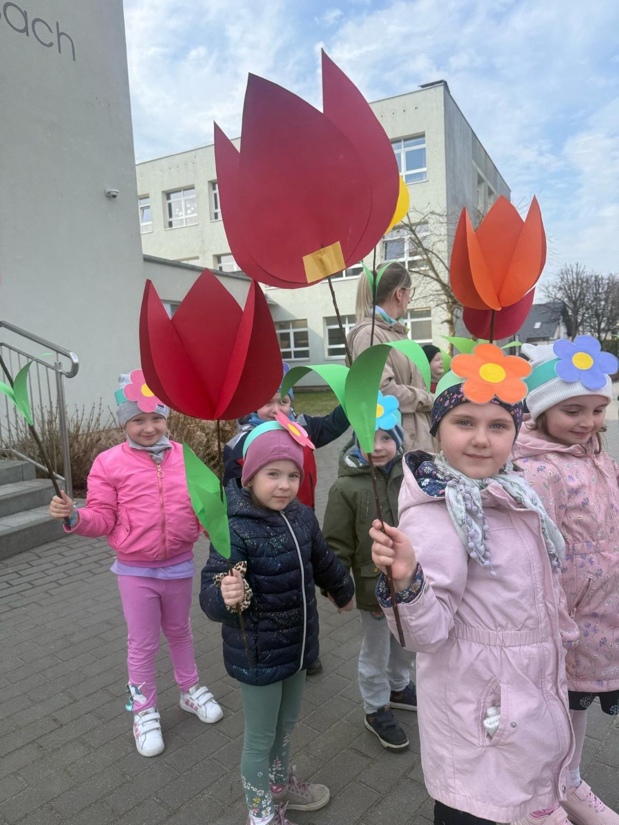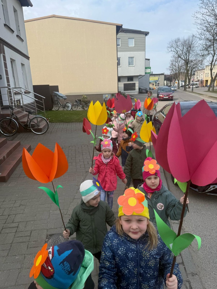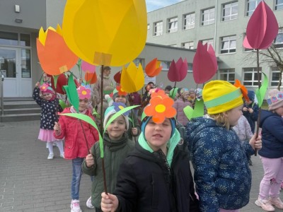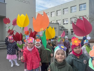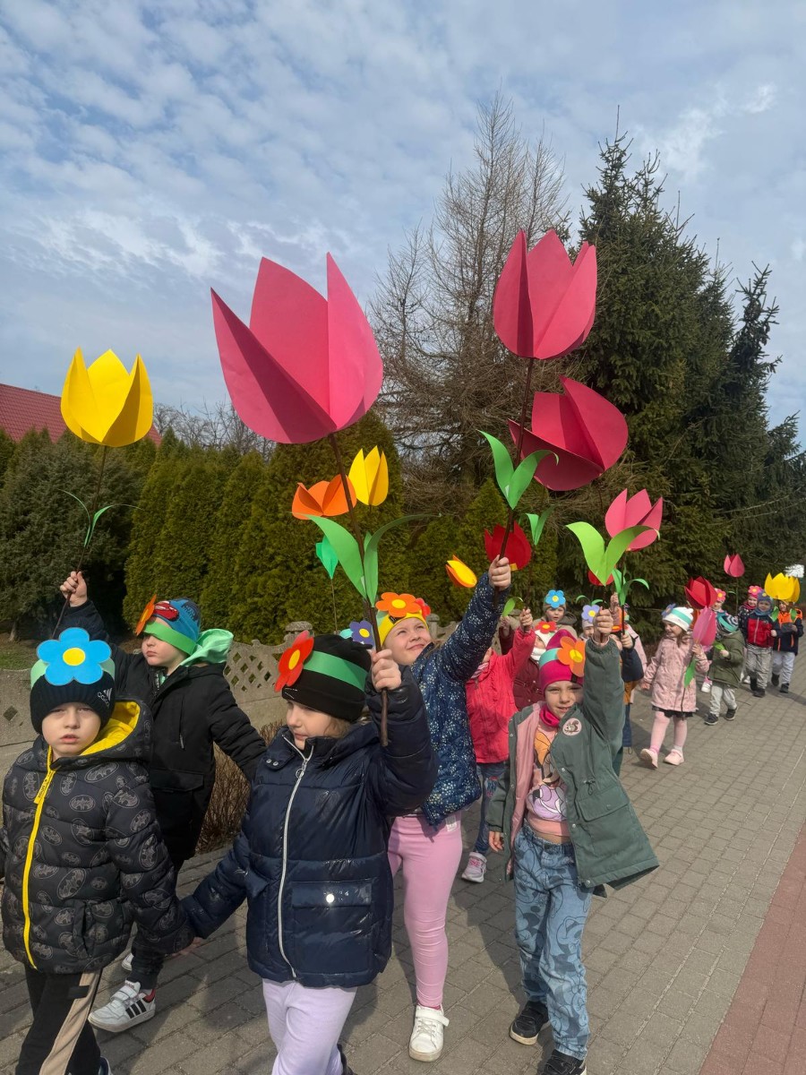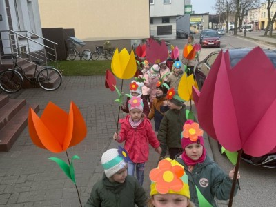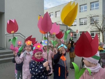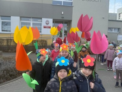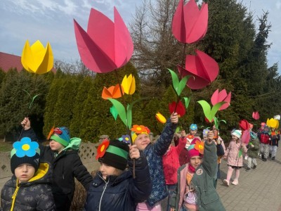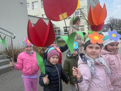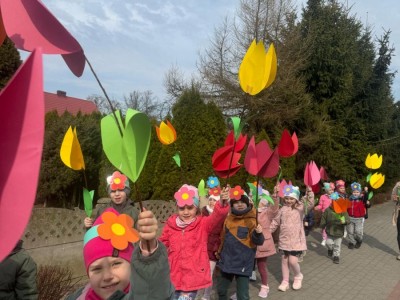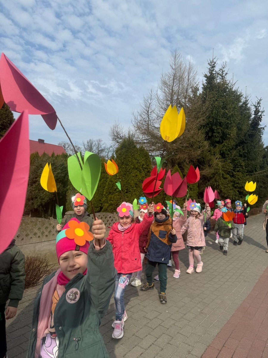 Przedszkolaki udały się na spacer, podczas którego pożegnały zimę i powitały wiosnę. Żabki wesoło maszerowały w wiosennym korowodzie z opaskami na głowach oraz kwiatami symbolizującymi wiosnę, śpiewając wiosenne piosenki. W ten sposób dzieci chciały wyrazić swoją radość z przyjścia nowej pory roku. Dzieci w tym dniu poznały tradycje i zwyczaje związane z powitaniem wiosny.