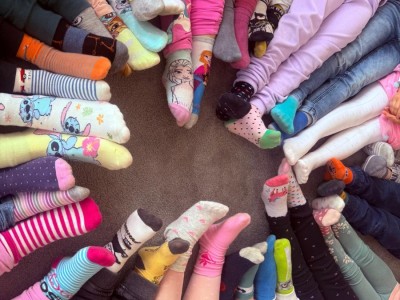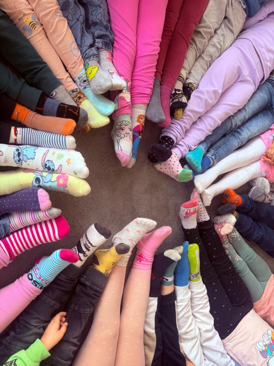 Tego dnia nie zapomniały również o kolorowych skarpetkach (skarpetkach nie do pary) - Światowy Dzień Zespołu Downa. Symbolizują one niedopasowane chromosomy w genotypie osób z zespołem Downa (w 21. parze), a także częste niedopasowanie społeczne, z którymi takie osoby się mierzą.