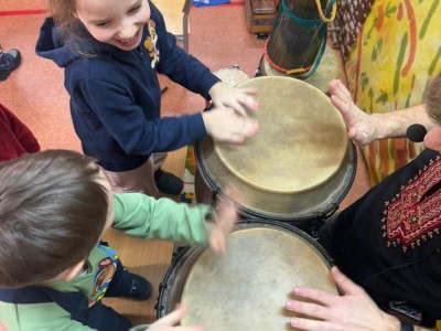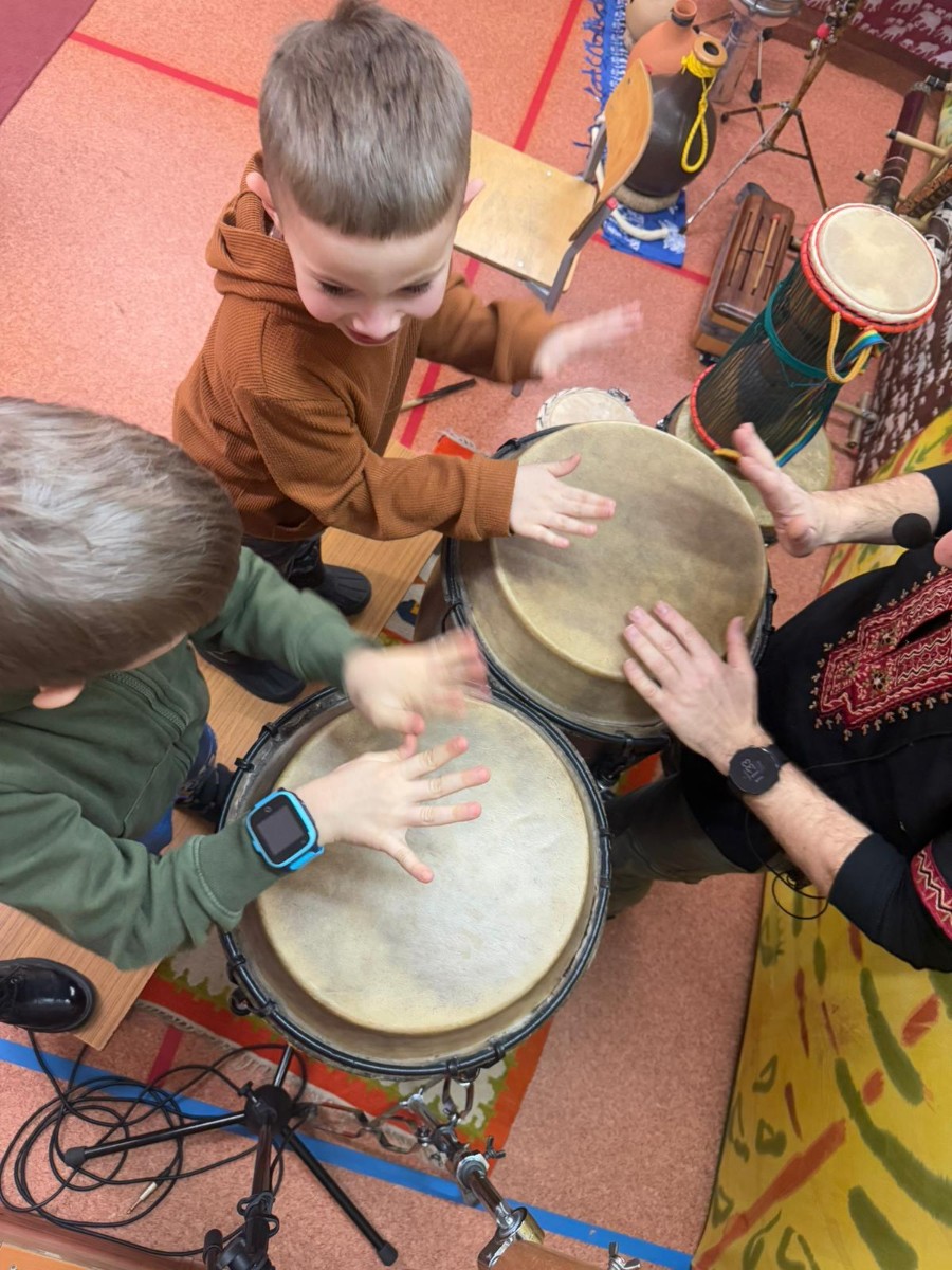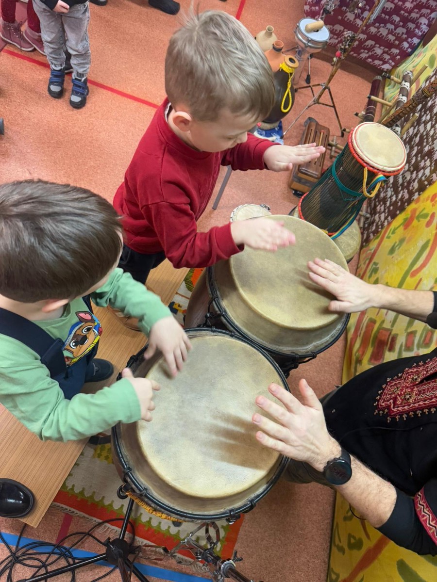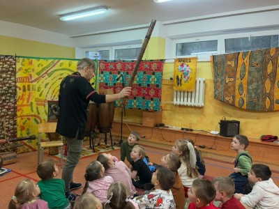 Dnia 24.01.2025r. grupa Żabki miała okazję uczestniczyć w pokazie muzyki etnicznej p. Sławomira Głowali.