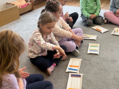 Dzieci z grupy Żabki uwielbiają różnego typu zadania matematyczne. Według prof. Edyty Gruszczyk – Kolczyńskiej najlepszym sposobem poznawania matematyki są osobiste doświadczenia dziecka. W zależności od grupy wiekowej dzieci mają możliwość działania samodzielnego czy też pod kierunkiem nauczyciela podczas zabaw i zajęć dydaktycznych. Korzyści stosowania tej metody są istotne w późniejszych etapach edukacyjnych dzieci. Znacząco rozwija ona umiejętności matematyczne, ale też pozwala poznać siebie.