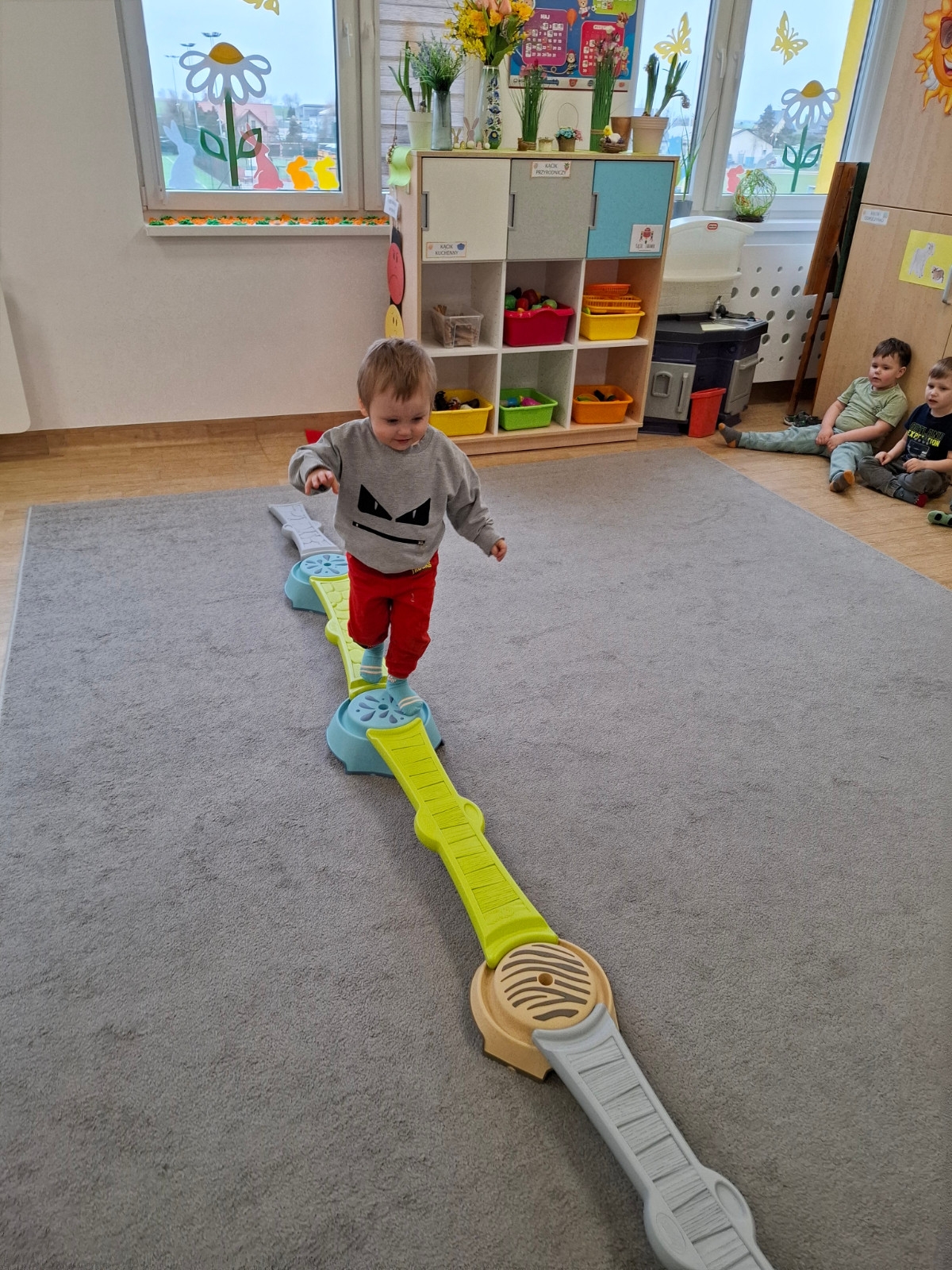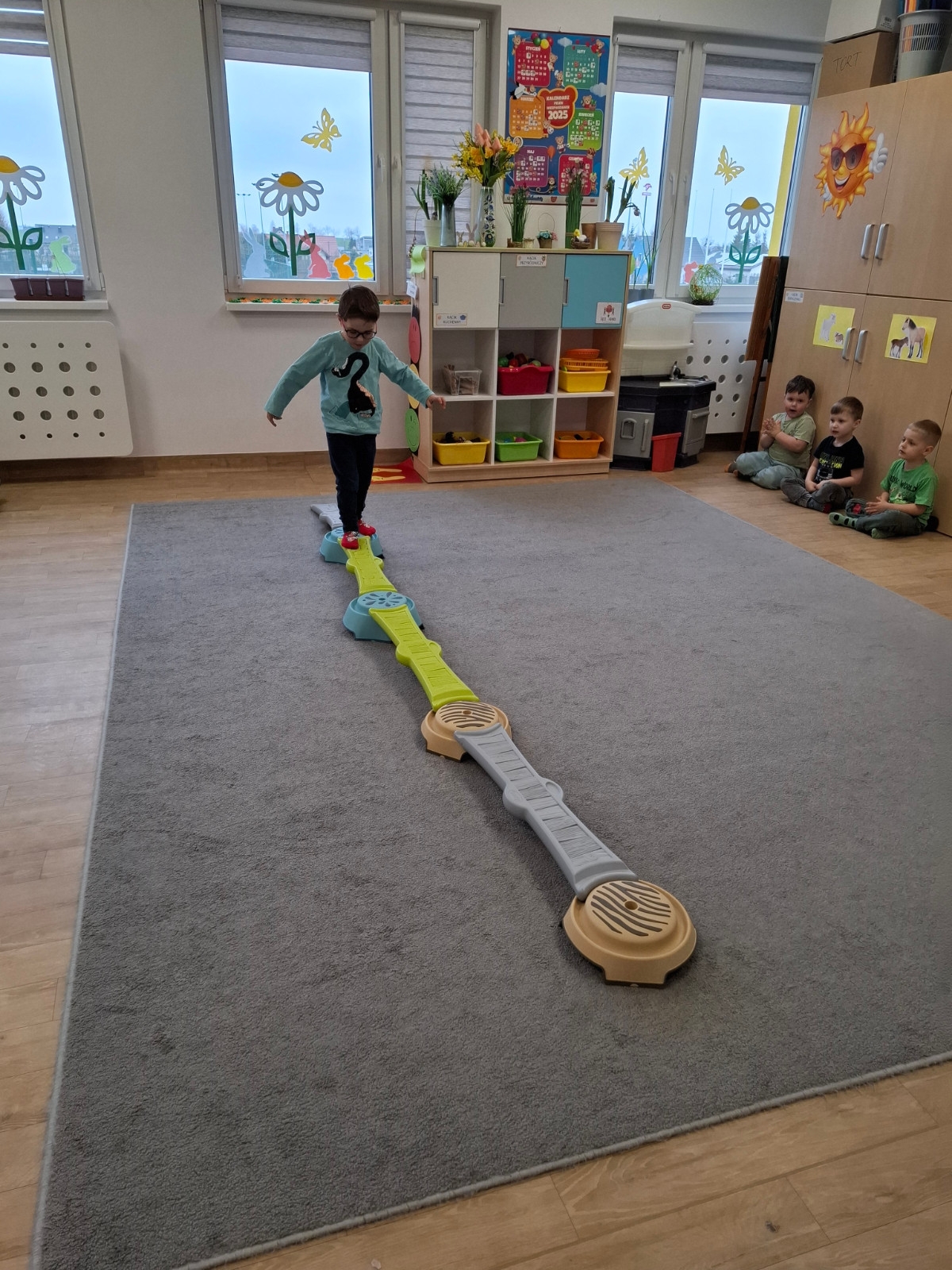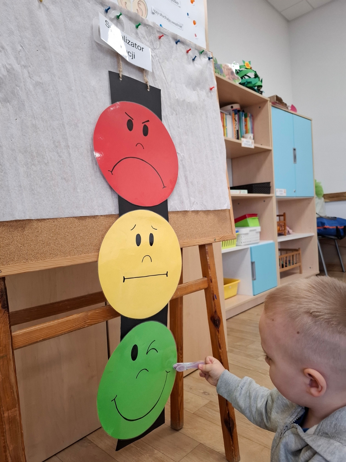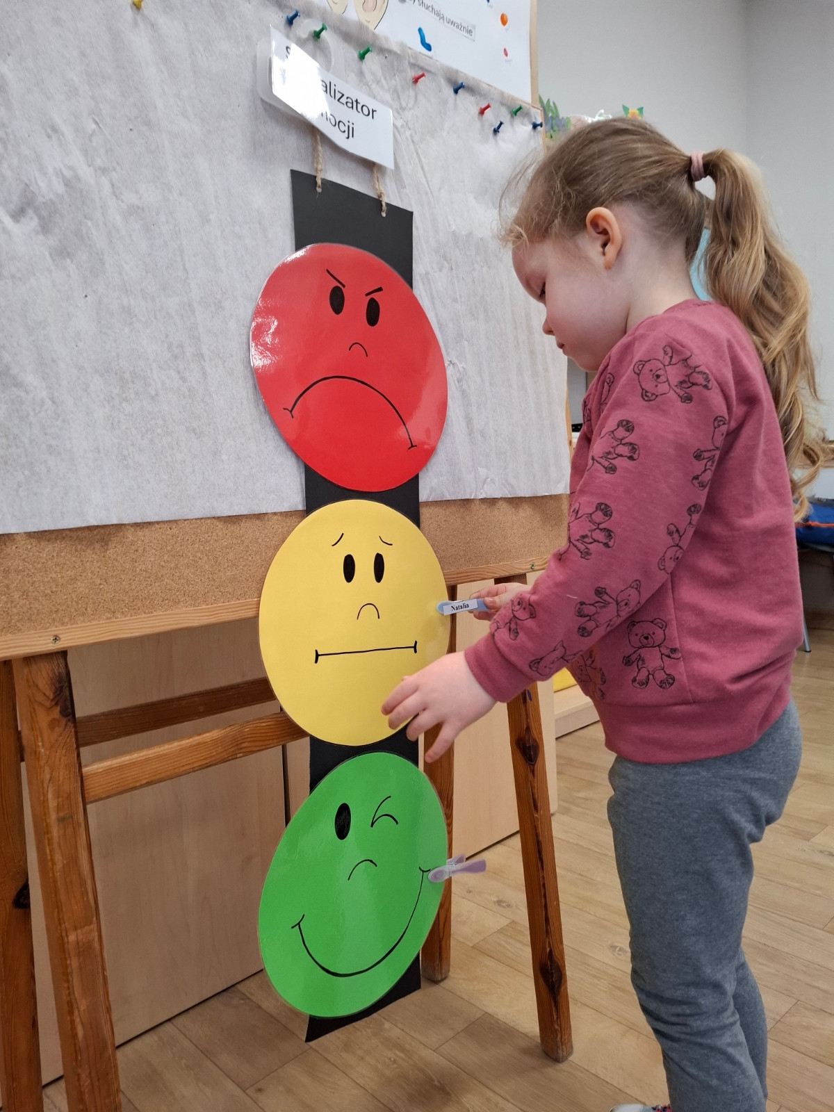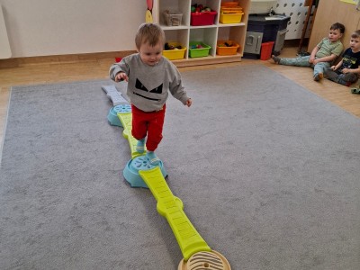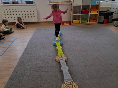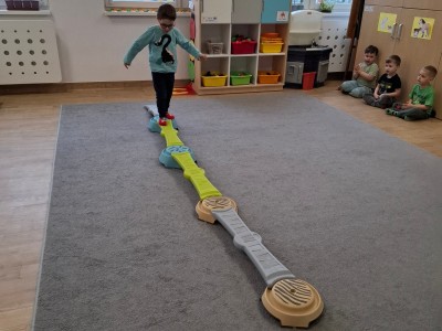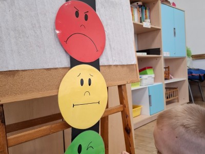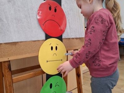 W grupie Słoneczka regularnie odbywają się zajęcia z projektu "Gmina Brusy stawia na przedszkolaków". Rozpoczynając zajęcia zawsze określamy swój obecny nastrój i rozmawiamy o tym dlaczego czasami jesteśmy smutni albo źli oraz o tym, jak poprawić komuś nastrój. Ostatnio pokonywaliśmy swój strach i lęk wędrując po ścieżce sensorycznej. Była to nie tylko walka z lękiem, ale dzięki tej pomocy mogliśmy sobie dostarczyć różnorodnych wrażeń zmysłowych.