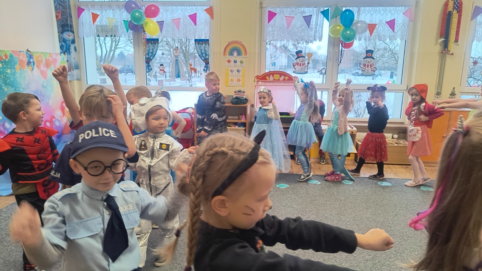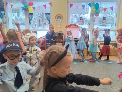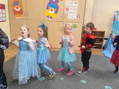W naszej placówce odbył się Bal Karnawałowy, który dostarczył dzieciom wielu niezapomnianych wrażeń. Wydarzenie rozpoczęło się od wspólnych zabaw ruchowych przy muzyce, wprowadzających wszystkich w karnawałowy nastrój. Dzieci dowiedziały się również, czym jest karnawał oraz jakie tradycje są z nim związane.