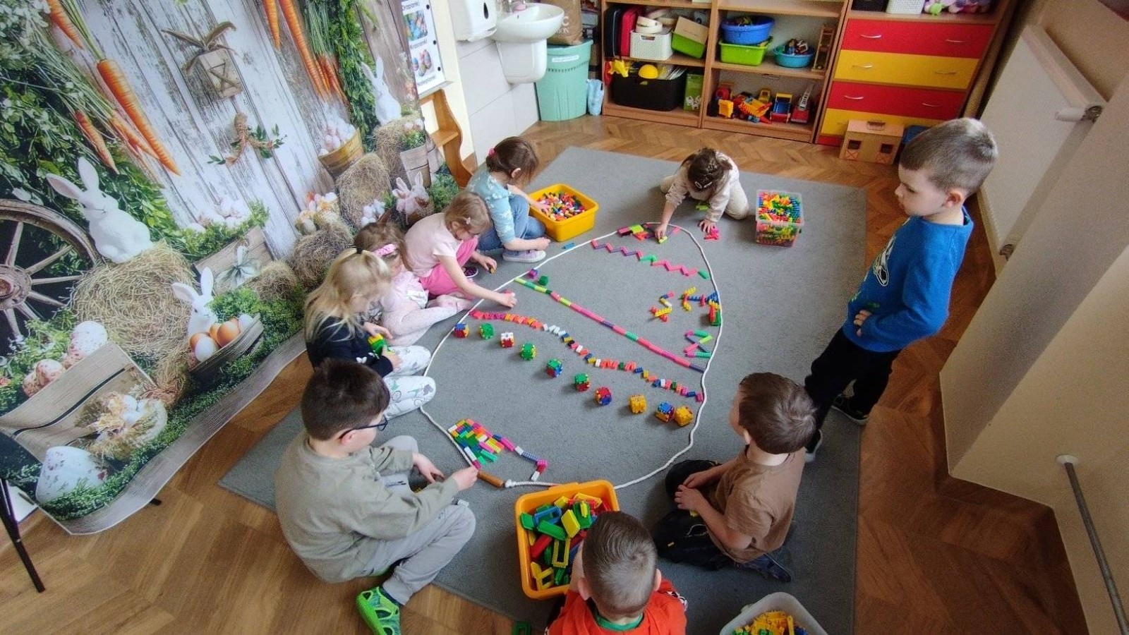 Dzieci podczas spotkań mają okazję do zabawy i ćwiczeń, które wspierają rozwój motoryczny, percepcję, myślenie oraz orientację.