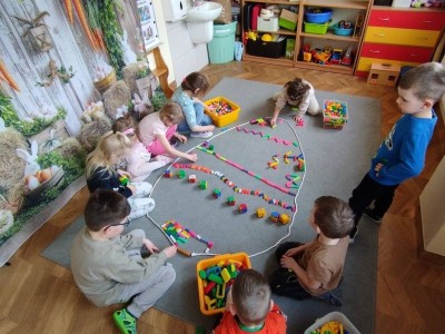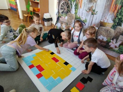 Podczas wspólnych spotkań milusińscy mieli okazję do zabawy w kalambury, kości obrazkowe, domino, karty obrazkowe, malowanie palcami na muzyki, kodowania z wykorzystanie kartoników, Ozobotów i kubeczków, gry na instrumentach tj. bum bum rurki, dzwoneczki itp., tańców i gimnastyki z wykorzystanie różnego typu przedmiotów gimnastycznych.