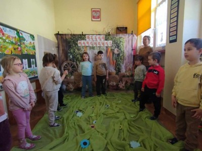Dzieci z grupy Zuchy systematycznie uczestniczą w zajęciach teatralnych realizowanych z projektu "Gmina Brusy stawia na przedszkolaków".