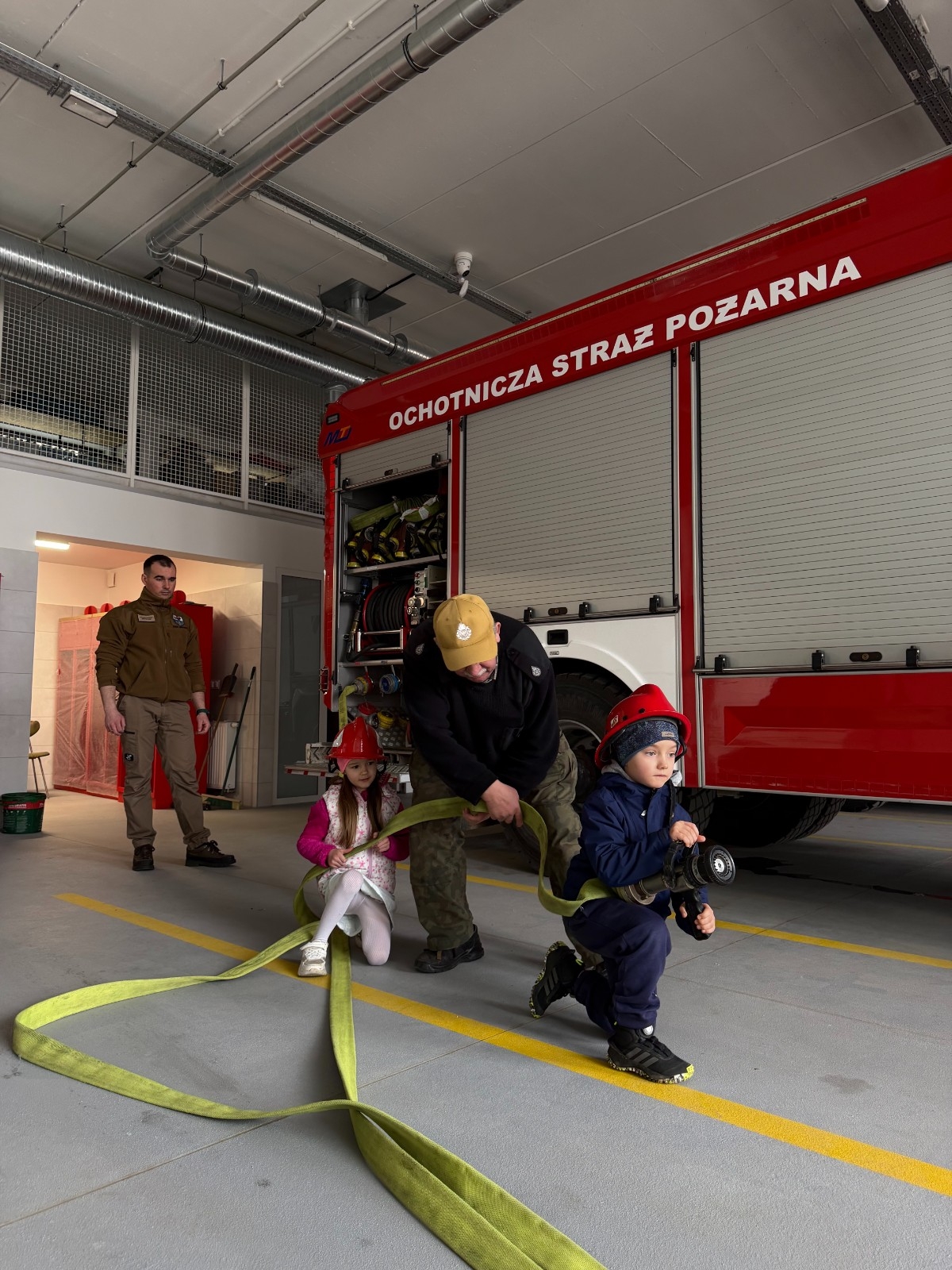 Dzieci mogły dowiedzieć się, jak wygląda ubiór strażaka oraz jakie wyposażenie znajduje się w wozie strażackim. Największą atrakcją była możliwość wejścia do wozu strażackiego i obejrzenia go z bliska. Przedszkolaki miały także okazję założyć strażacki hełm oraz potrzymać wąż strażacki, co sprawiło im wiele radości.