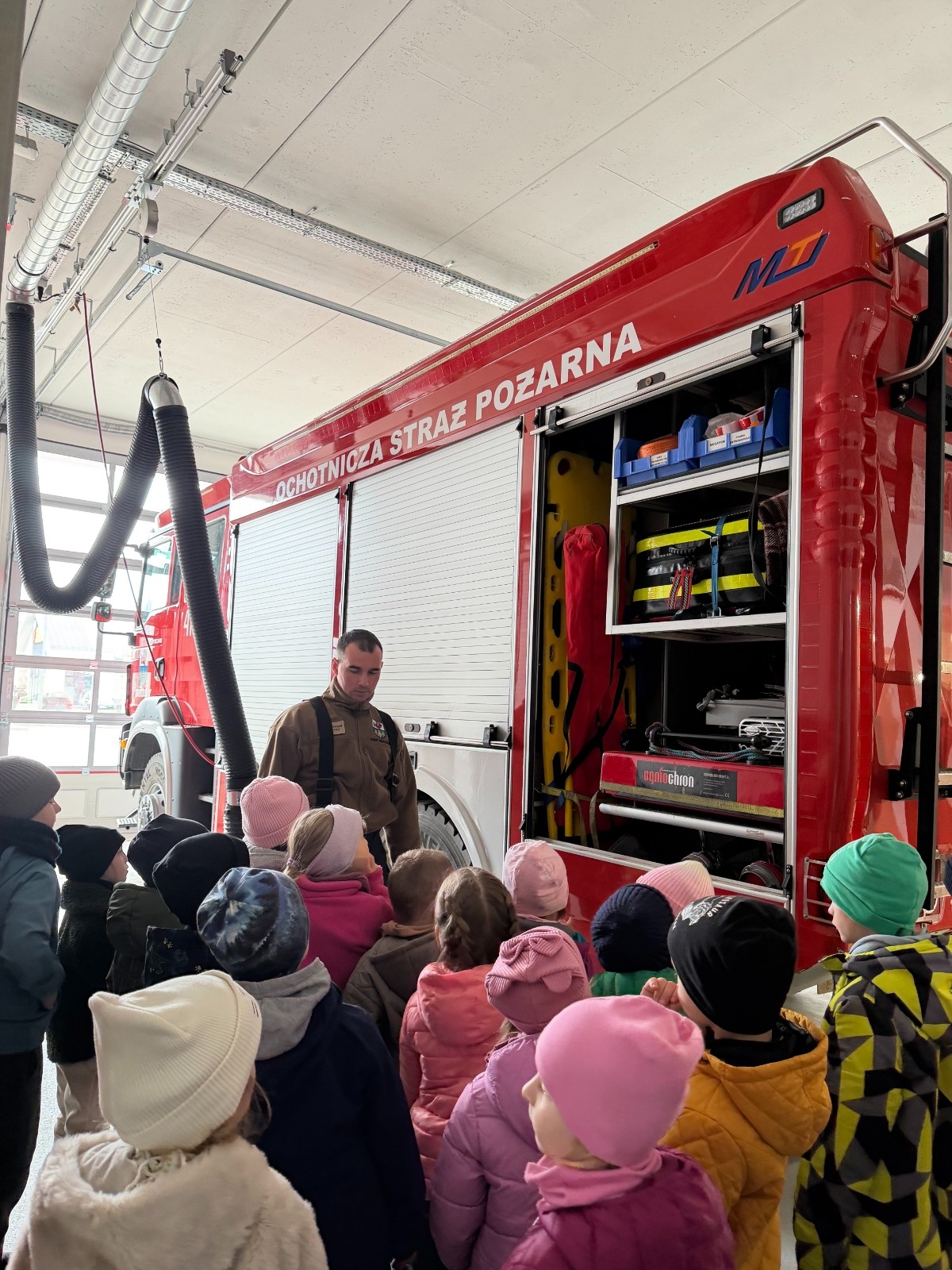 Niezwykłą ciekawostką dla dzieci było to, że ubiór strażaka wraz z wyposażeniem waży około 30 kg, a butla z tlenem wystarczy na godzinę pracy. Przedszkolaki dowiedziały się również, że strażacy posiadają specjalną czujkę, która uruchamia alarm, gdy strażak przez dłuższą chwilę pozostaje bez ruchu, co zwiększa ich bezpieczeństwo podczas akcji. Spotkanie było bardzo interesujące i pełne nowych doświadczeń.