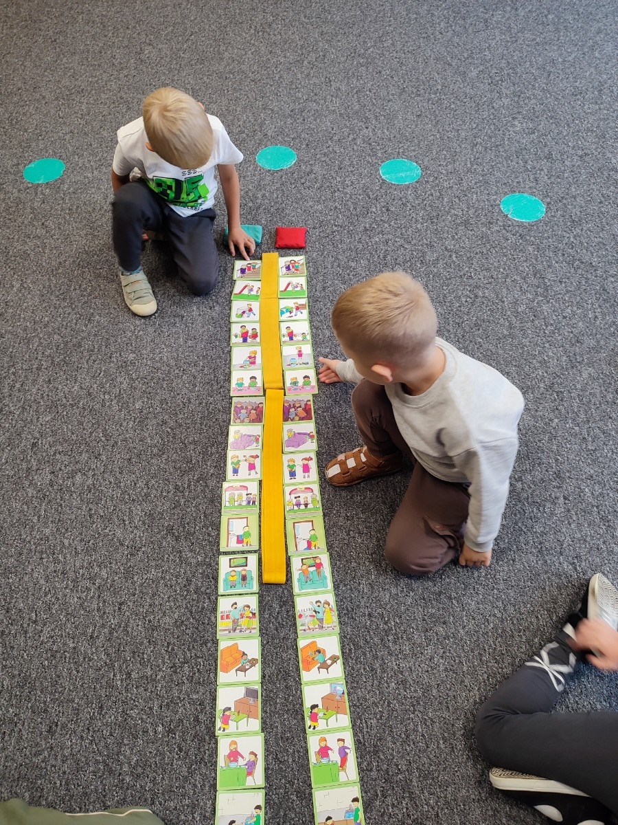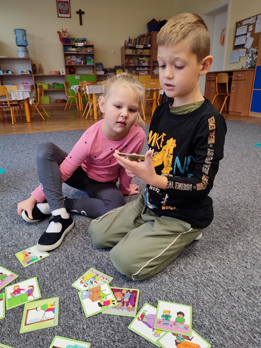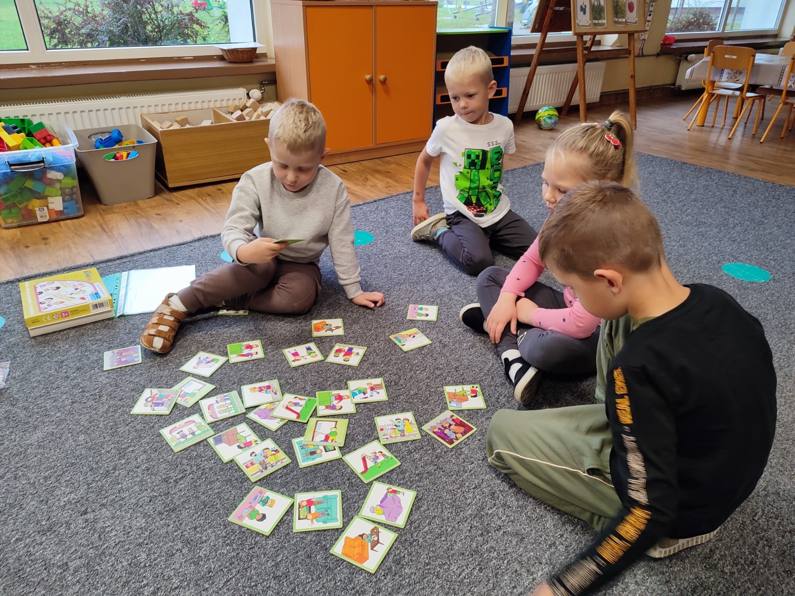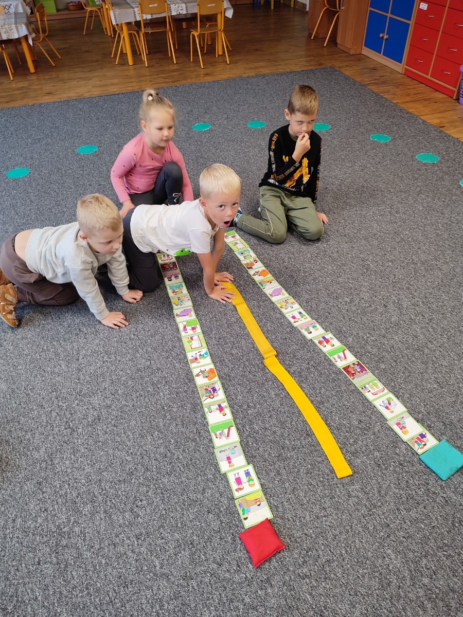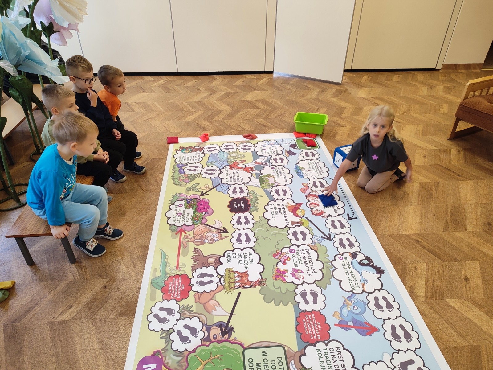 Zajęcia psychoruchowe prowadzone w naszym przedszkolu w ramach programu Gmina Brusy stawia na przedszkolaków zawsze na twarzach dzieci wywołują uśmiech i zaciekawienie. Tym razem na jednym spotkaniu dzieci oceniały, które z przedstawionych sytuacji są poprawne, a które nigdy nie powinny mieć miejsca. Wszystkie oczywiście odnosiły do swojego codziennego życia. Na kolejnym spotkaniu "spacerowały po lesie" biorąc udział w grze planszowej podczas, której doskonaliły umiejętność współdziałania w zespole, przeliczania i radzenia sobie z porażką.
