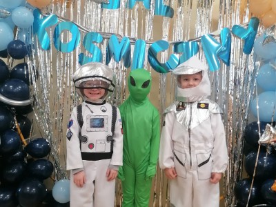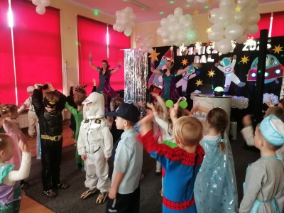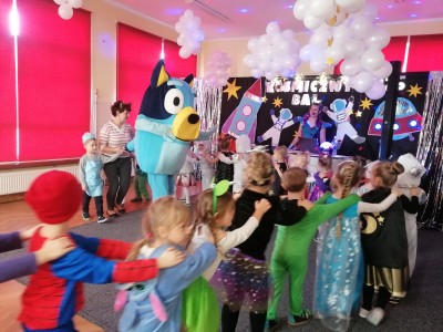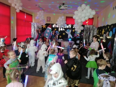 Na początku lutego w naszym przedszkolu odbył się bal, który w tym roku wyjątkowo był w temacie kosmosu. Grono dzieci za sprawą rodziców było ubrane w stroje kosmonautów, ale oczywiście nie zabrało księżniczkek, wróżek i super bohaterów. Zabawę poprowadziły Panie z Animacje Rewelacje, które przeniosły nas za sprawą muzyki w przestrzeń kosmiczną. Oprócz wielu ciekawych zabaw była atrakcja dla dzieci, a mianowicie pojawiła się wśród nas postać z bajki Blue. Bal zachęcał atmosferą do radosnej i wesołej zabawy wszystkich uczestników.