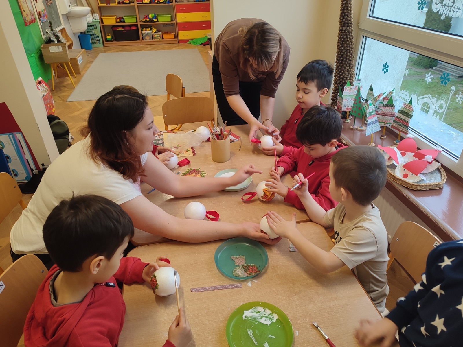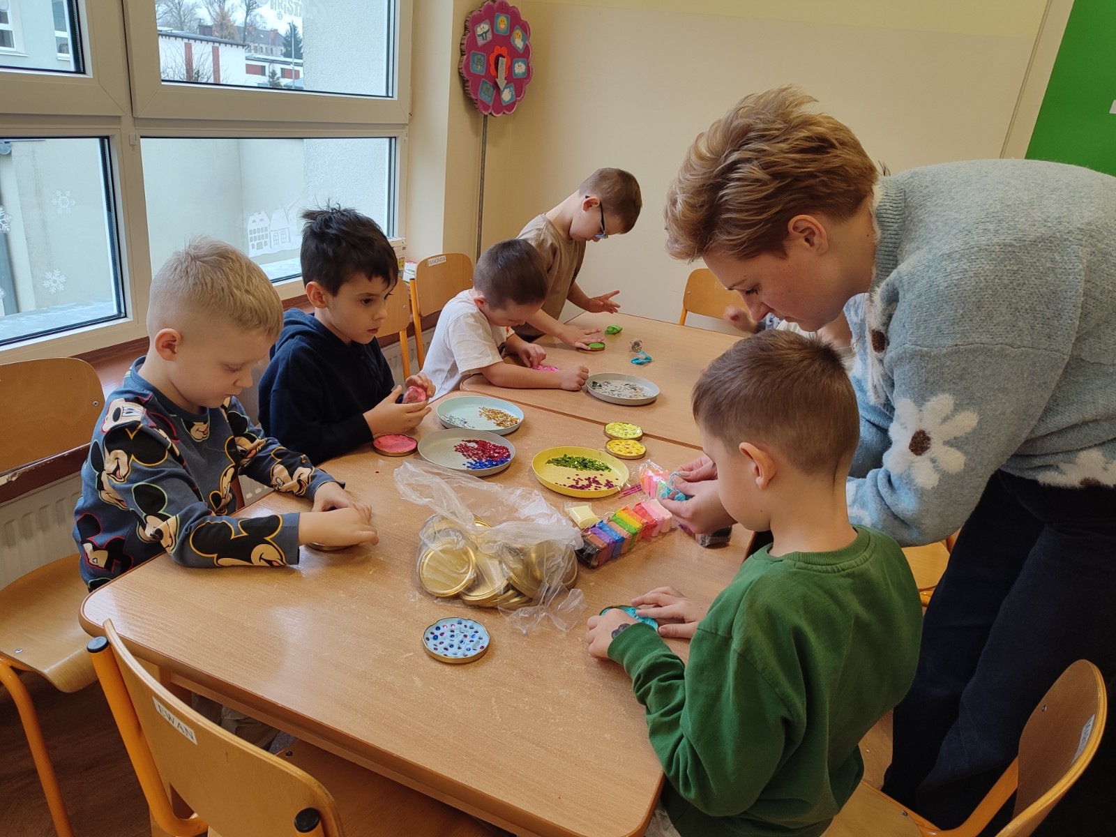 Któż z nas nie lubi świąt? Zuchy z Przedszkola nr 1 odliczały każdy dzień do Wigilii. By umilić sobie czas, brały udział w różnorodnych zajęciach. Do tych aktywności zaprosiły mamy i panią Alicję – pedagoga specjalnego. Z panią Alicją przygotowywały kartki świąteczne dla Gości ze Środowiskowego Domu Samopomocy. Z mamą Marcela piekły świąteczne ciasteczka, natomiast z mamą Stasia tworzyły przepiękne, kolorowe bombki. Serdecznie dziękujemy za wspólnie spędzony czas!