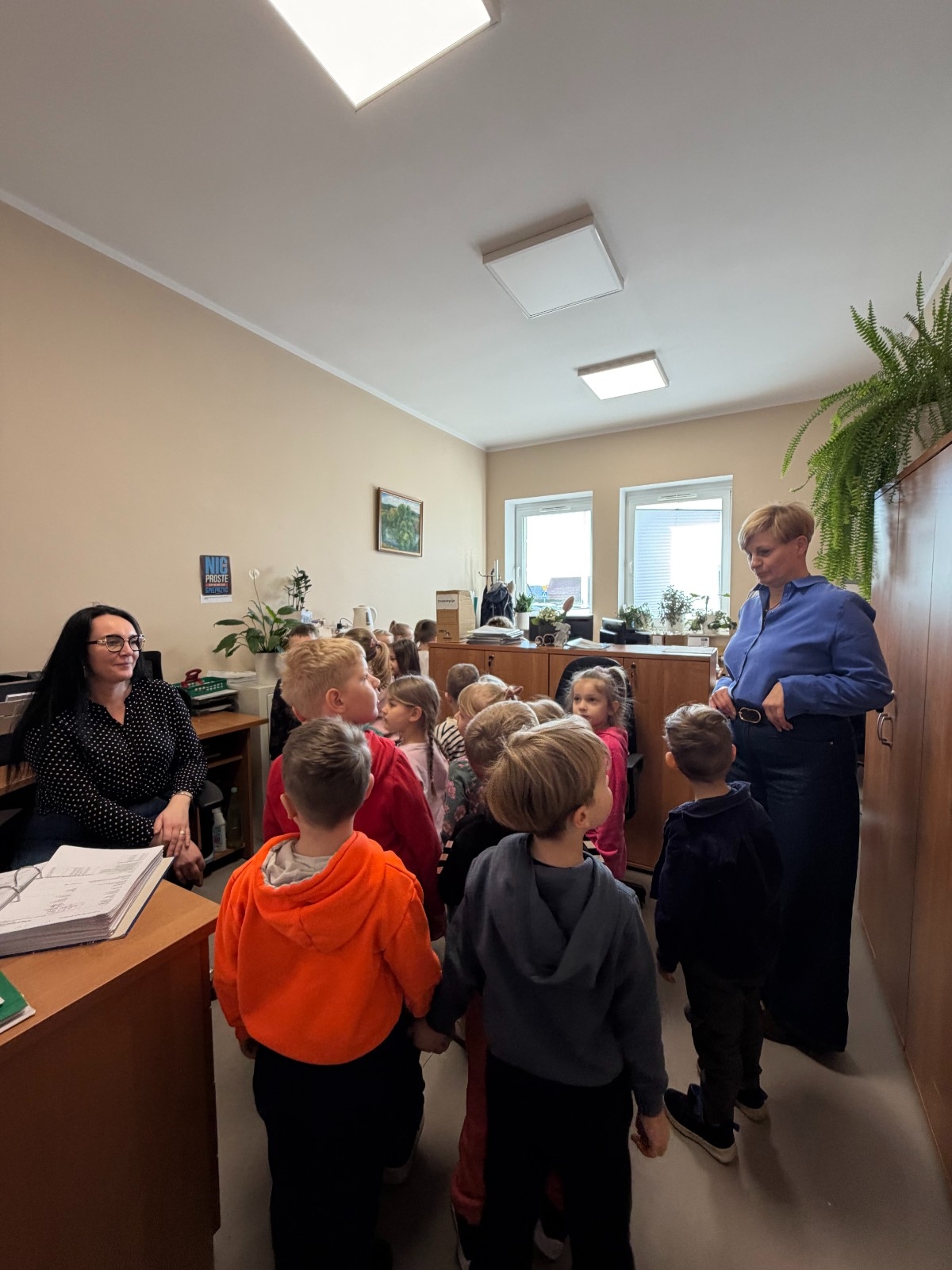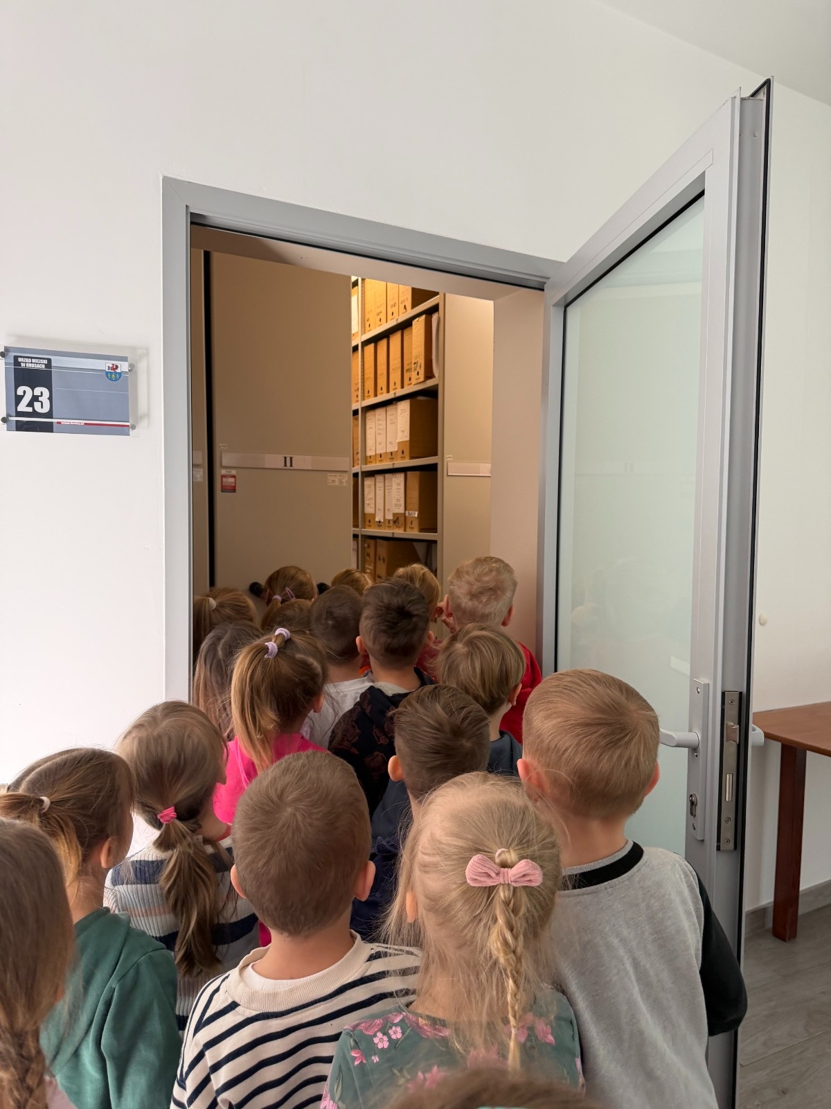 Dużym zainteresowaniem cieszyła się wizyta w archiwum, gdzie dzieci mogły zobaczyć dokumenty i dowiedzieć się, w jaki sposób przechowywana jest historia miasta i gminy. Następnie przedszkolaki odwiedziły kasę urzędu, gdzie zobaczyły sejf, a także zajrzały do sekretariatu.