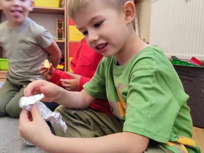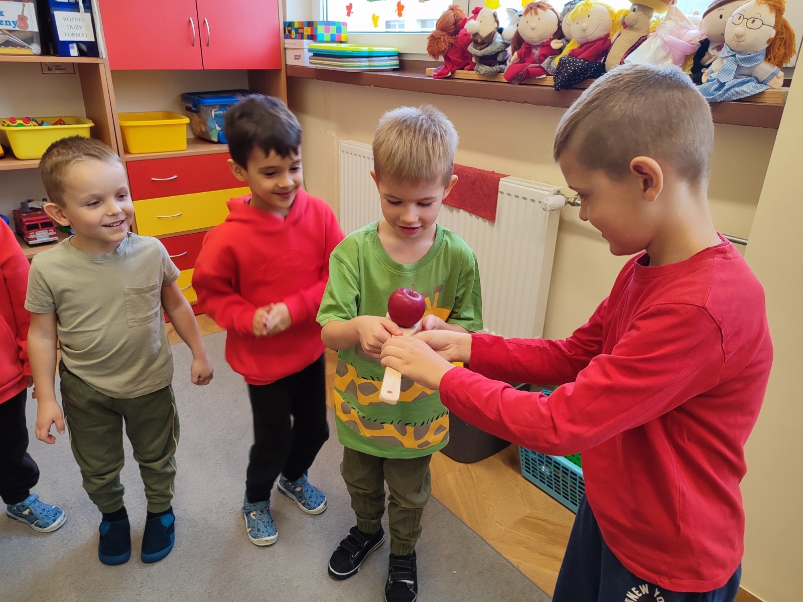 Każdy przedszkolak uwielbia jabłka! Przekonaliśmy się o tym w październiku podczas świętowania dnia tego owocu. Dzień jabłka przyniósł wszystkim mnóstwo radości. Piosenki, zabawy ruchowe, pogadanki o właściwościach zdrowotnych owoców i możliwościach ich przetworzenia oraz degustacja świeżego soku sprawiły, że apetyt dzieci na owoce wzrósł jeszcze bardziej. Jedzmy więc owoce! Na zdrowie!
