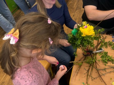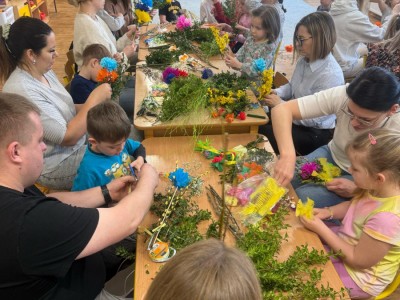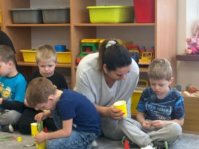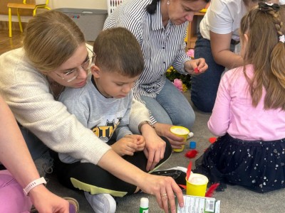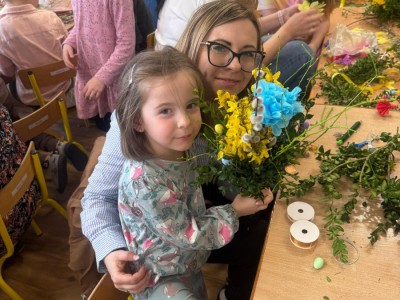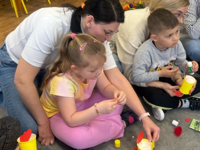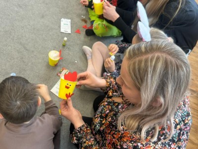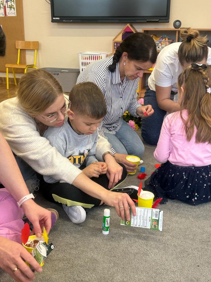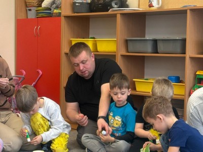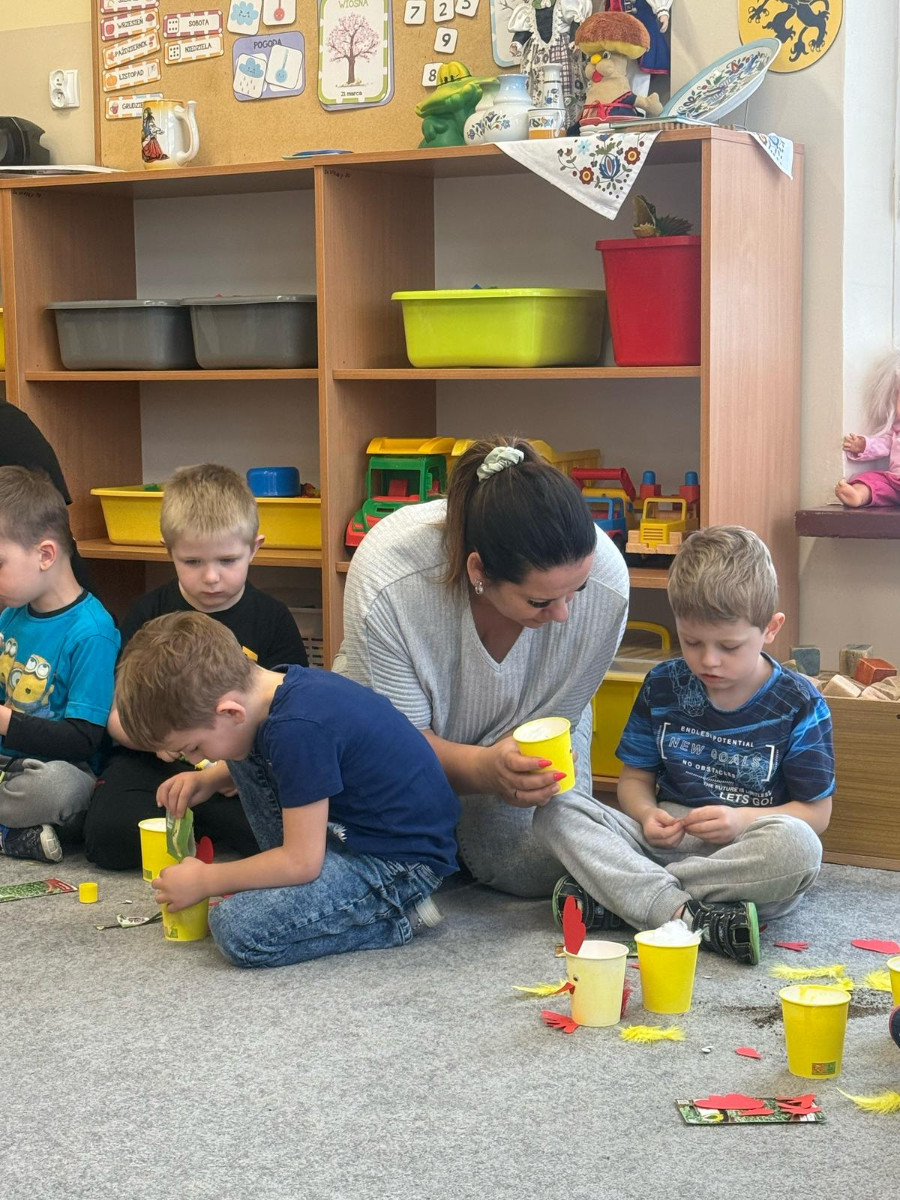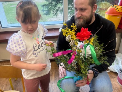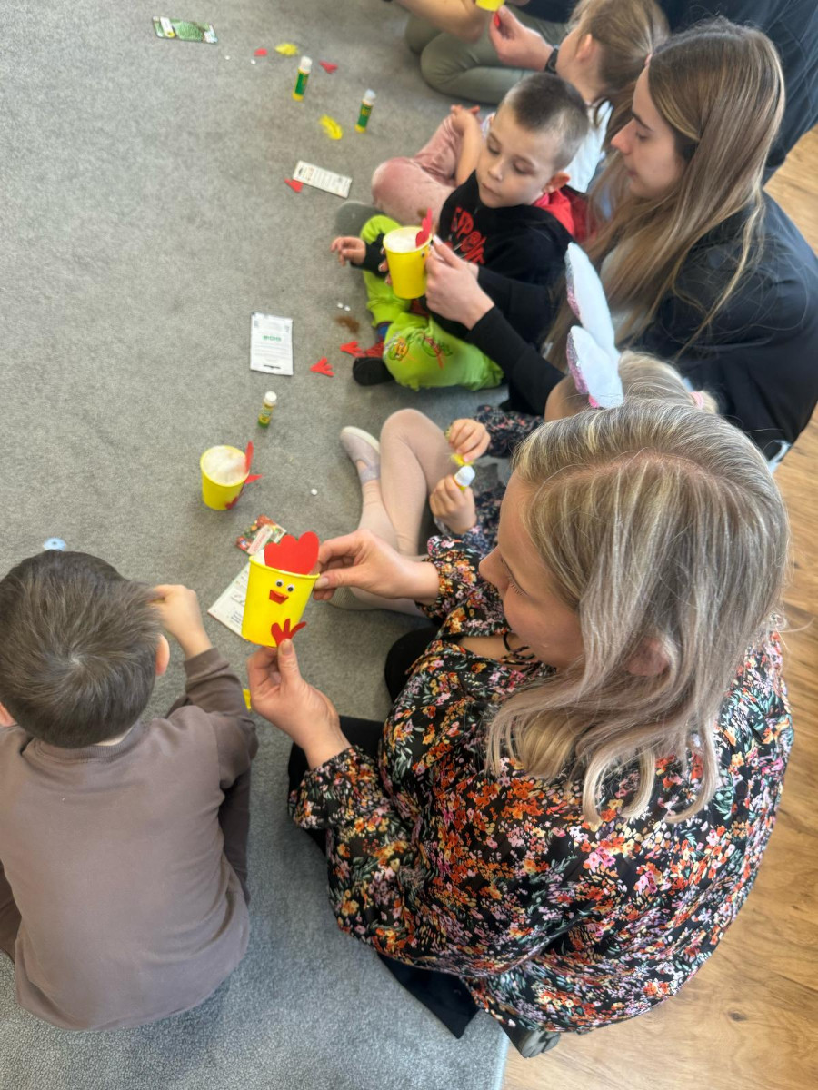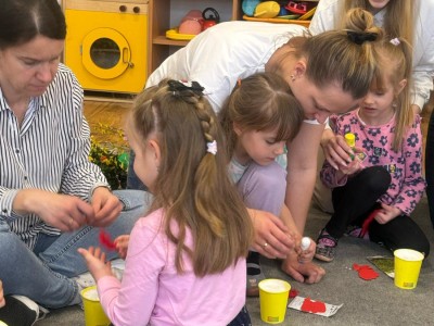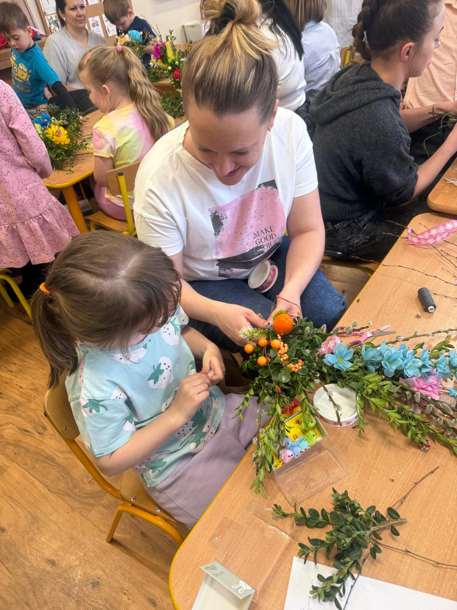 W piątek 14. kwietnia, w grupie Żabek odbyły się wyjątkowe Warsztaty Wielkanocne z udziałem rodziców. Dzieci wspólnie z najbliższymi tworzyły tradycyjne palmy wielkanocne oraz siały rzeżuchę. Sala przedszkolna zamieniła się w kolorową pracownię – stoły zostały udekorowane bibułą, gałązkami bukszpanu, kolorowymi kwiatami, elementami dekoracyjnymi i wstążkami. Pod okiem nauczycieli oraz z pomocą rodziców, dzieci z zapałem skręcały, wiązały i ozdabiały swoje palmy. Wspólna praca była doskonałą okazją do integracji grupowej. To było niezwykle ciepłe i rodzinne spotkanie, które na długo zostanie w naszej pamięci. Wszystkim uczestnikom spotkania dziękujemy za udział i zaangażowanie oraz mile spędzony czas. :)