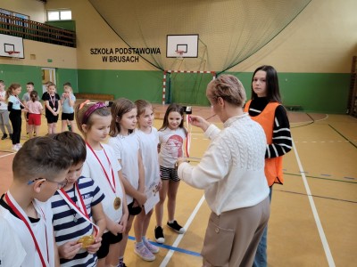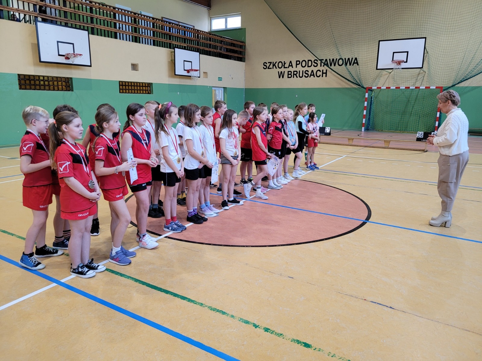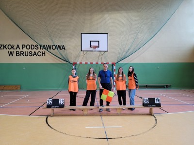 Turniej przeprowadzili nauczyciele wf p. Justyna Meller i p. Andrzej Erdmańczyk przy wsparciu dziewcząt uczestniczących w programie Młodzieżowego Organizatora Sportu w SP 1 w Brusach.