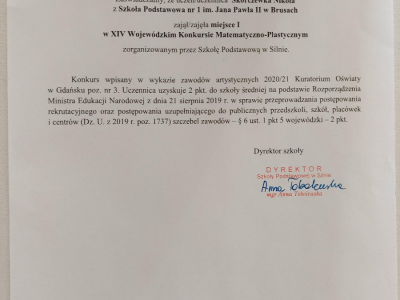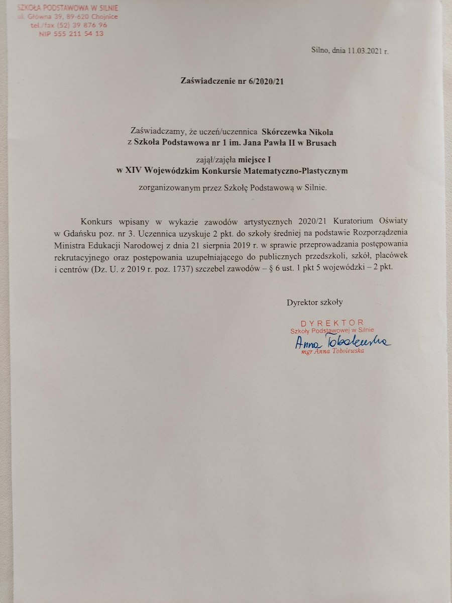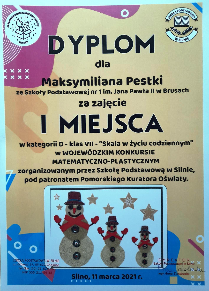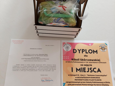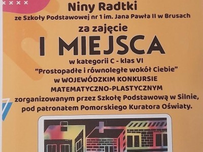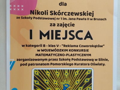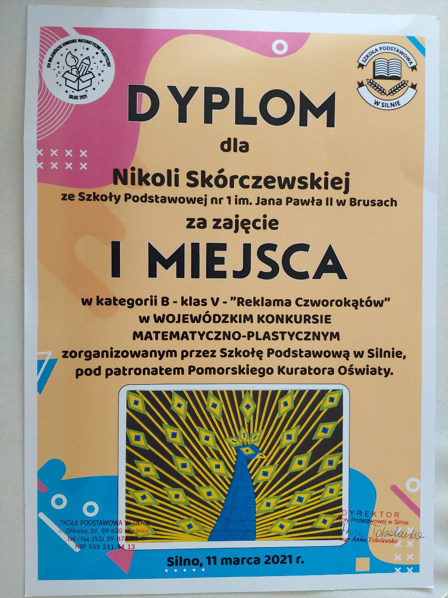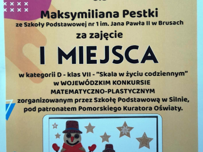 SP BRUSY NR 1: Sukces uczniów Szkoły Podstawowej nr.1 im. Jana Pawła II w Brusach w XIV Wojewódzkim Konkursie Matematyczno-Plastycznym