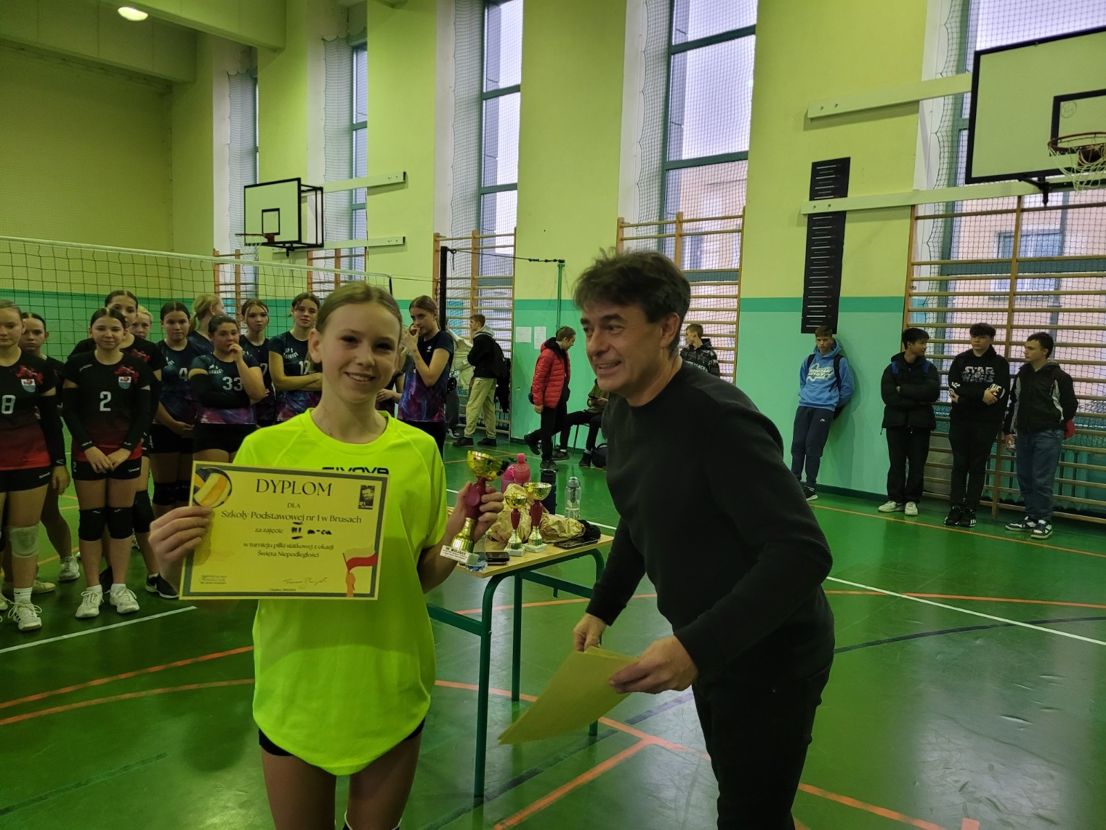 W dniu 8 listopada dziewczęta ze Szkoły Podstawowej nr 1 w Brusach wzięły udział w turnieju piłki siatkowej zorganizowanym przez SP nr 1 w Chojnicach z okazji Święta Niepodległości. W turnieju wzięły udział cztery zaproszone drużyny. Po zwycięstwie z SP Nowa Cerkiew oraz wyrównanych, ale przegranych meczach z SP 1 Chojnice i z SP Kosobudy dziewczęta zajęły III miejsce. Jak to w każdym turnieju bywa, wynik miał zapewne dla naszych zawodniczek znaczenie, ale najważniejsza była dobra i przyjazna atmosfera. Ważnym elementem było wspólne odśpiewanie hymnu narodowego w ramach akcji "Szkoły do hymnu" dokładnie o symbolicznej godzinie 11:11.