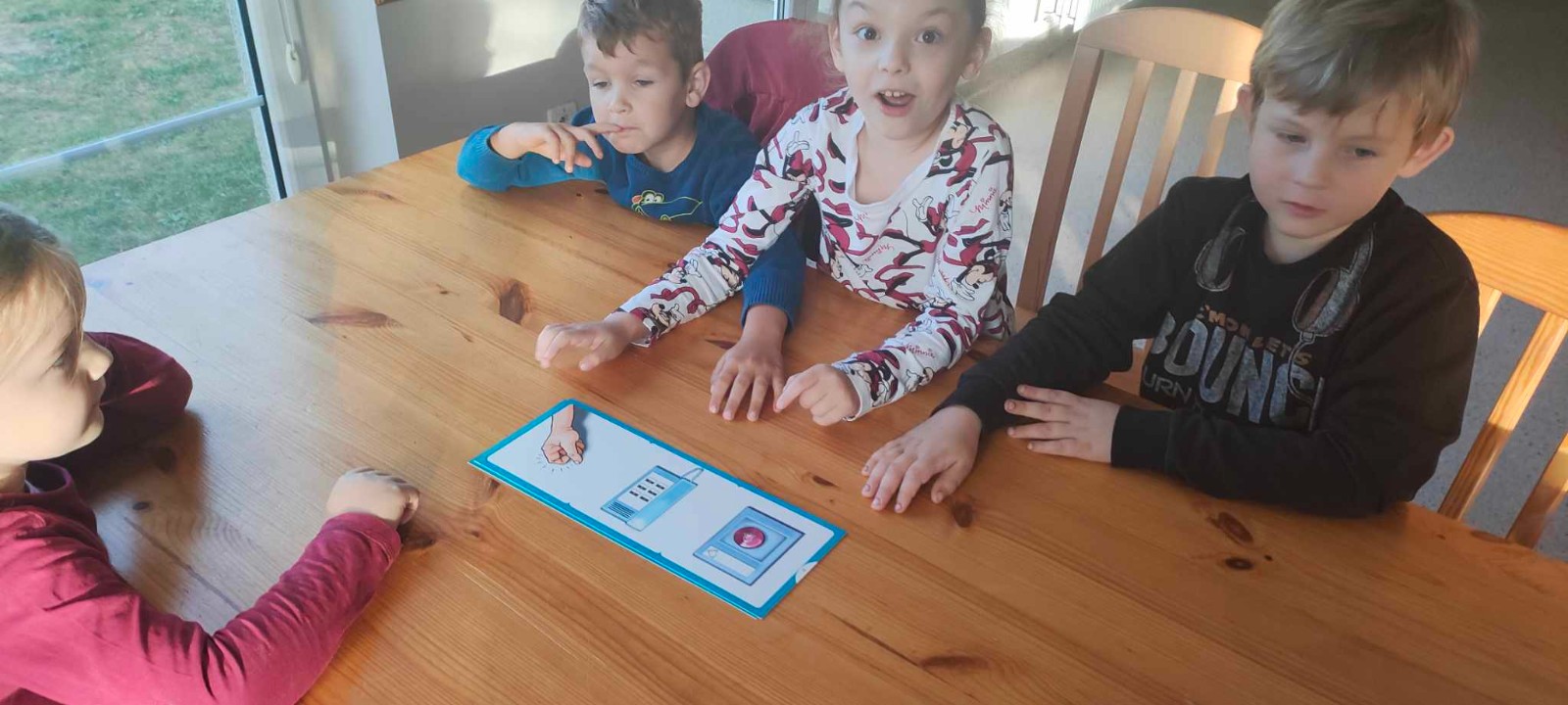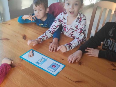 Kolejnym zadaniem było C– co słyszysz? Dzieci kształtowały słuch fonematyczny. Zadaniem dzieci było różnicowanie wyrazów podobnie brzmiących oraz wykonanie ruchu zgodnie z tym co usłyszały.