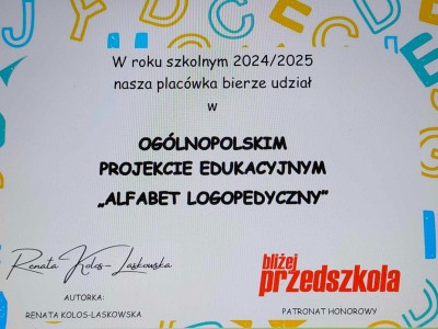 W roku szkolnym 2024/2025 na zajęciach z logopedii przystąpiliśmy do ogólnopolskiego projektu edukacyjnego „Alfabet logopedyczny”. Pierwsze zadania już na nami! „A- arbuz”- dzieci za pomocą słomki przenosiły pestki na arbuza lub je rozdmuchiwały. „B- bańki”- dmuchamy, aby powstało mnóstwo baniek.