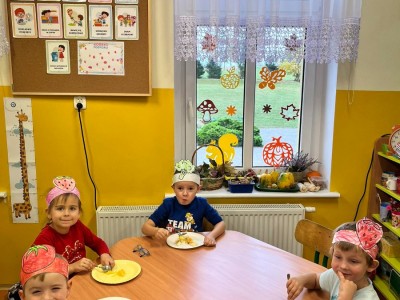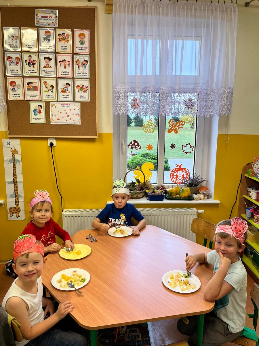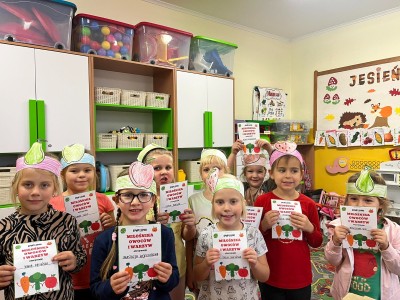 20 października w naszym przedszkolu obchodziliśmy Dzień Warzyw i Owoców. Głównym celem zajęć było zachęcanie dzieci do spożywania warzyw i owoców oraz rozmowa na temat zdrowych i niezdrowych produktów żywnościowych. Tego dnia w naszej sali zapachniało owocami z których dzieci zrobiły sałatkę owocową. Na koniec zajęć każdy przedszkolak otrzymał dyplom miłośnika owoców i warzyw.