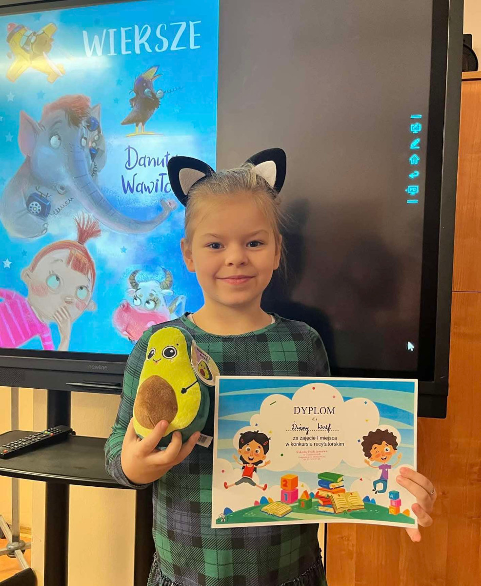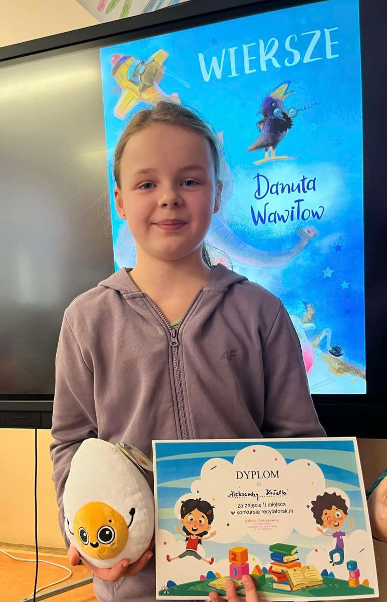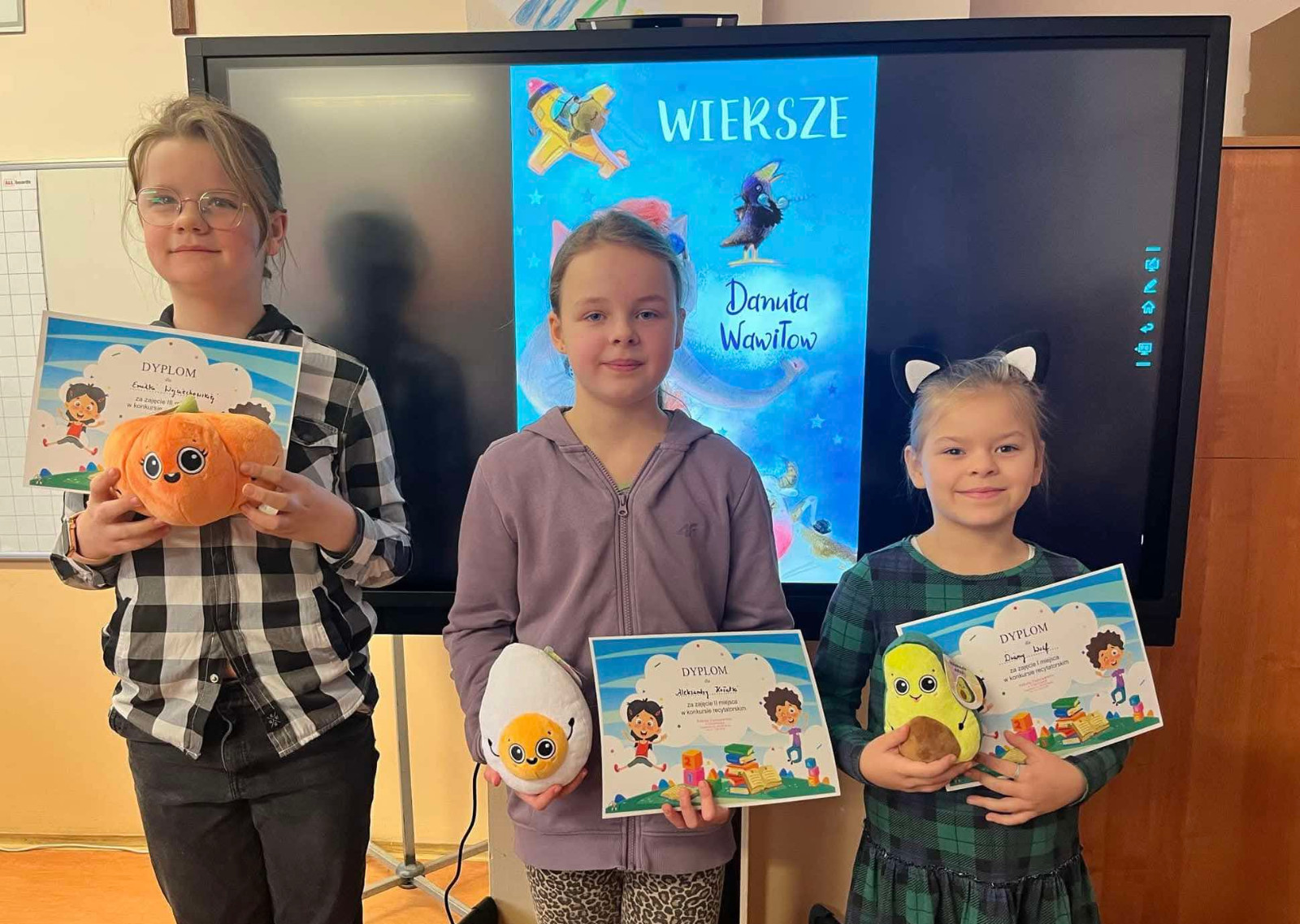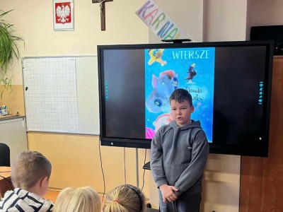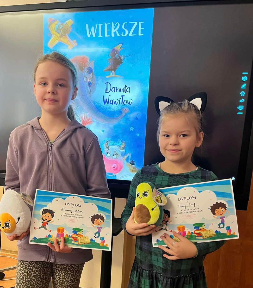 14 lutego w naszej szkole odbył się konkurs recytatorski dla dzieci z klas 1-3. Tematyką były wiersze Danuty Wawiłow. Wszyscy uczniowie nauczyli się swoich ról i pięknie wyrecytowali wiersze. Do kolejnego etapu gminnego zakwalifikowały się Diana Wolf z klasy pierwszej oraz Aleksandra Kołatka z klasy trzeciej. Życzymy dziewczynkom powodzenia i trzymamy kciuki :)