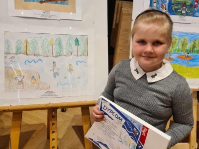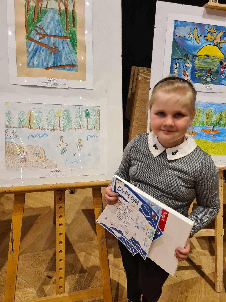 Natomiast 17 maja br. w Centrum Kultury i Biblioteki im. Jana Karnowskiego w Brusach wręczone zostały nagrody w XXIII Pomorskim Konkursie Plastycznym ,,Ziemia Kaszubska Słoneczna i Czysta” pod hasłem ,,Jeziora, plaże i rzeki na Kaszubach”. Za rysunek w kategorii wiekowej do 6 lat- III miejsce zdobyła Małgorzata Bruska. Serdecznie gratulujemy.