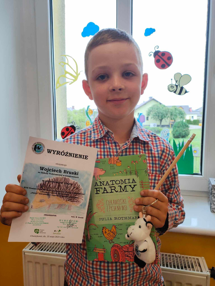23 maja w Centrum Edukacji Przyrodniczej Parku Narodowego „Bory Tucholskie” w Chocińskim Młynie wręczono nagrody za etap plastyczny w XVII Wiosennym Konkursie Wiedzy Przyrodniczej. Konkurs przeznaczony był dla dzieci z kl. 0 I i kl. I z przedszkoli i szkół podstawowych z powiatu chojnickiego. Z naszej szkoły zostały nagrodzone Diana Wolf oraz Zuzanna Wysocka. Wyróżnienie otrzymał również Wojciech Bruski z klasy I.