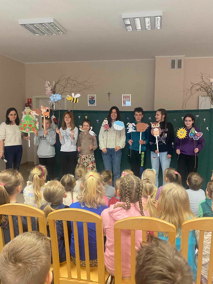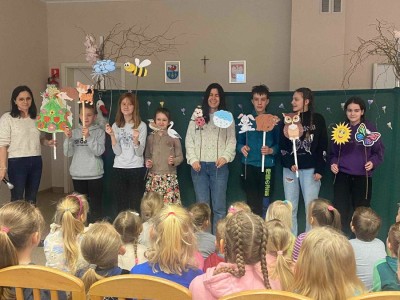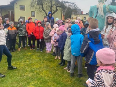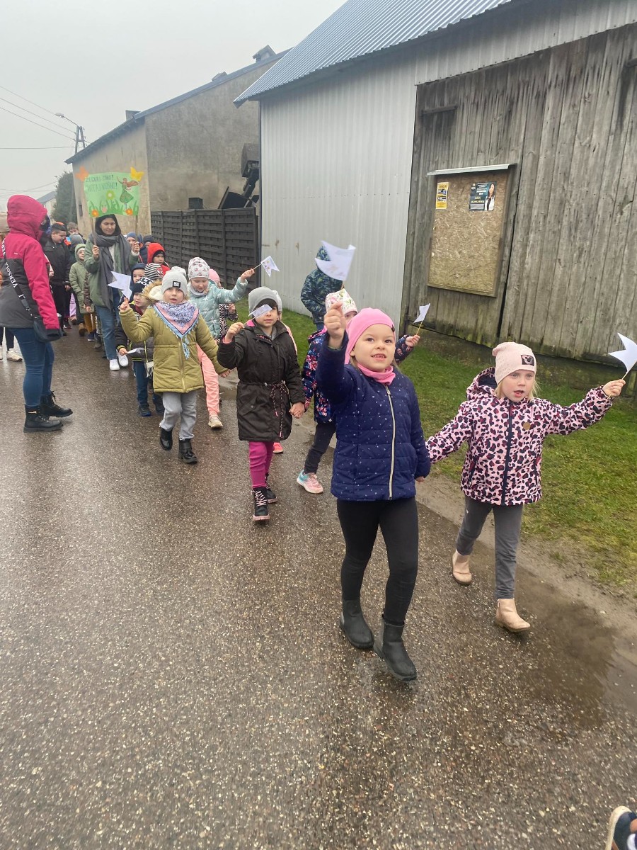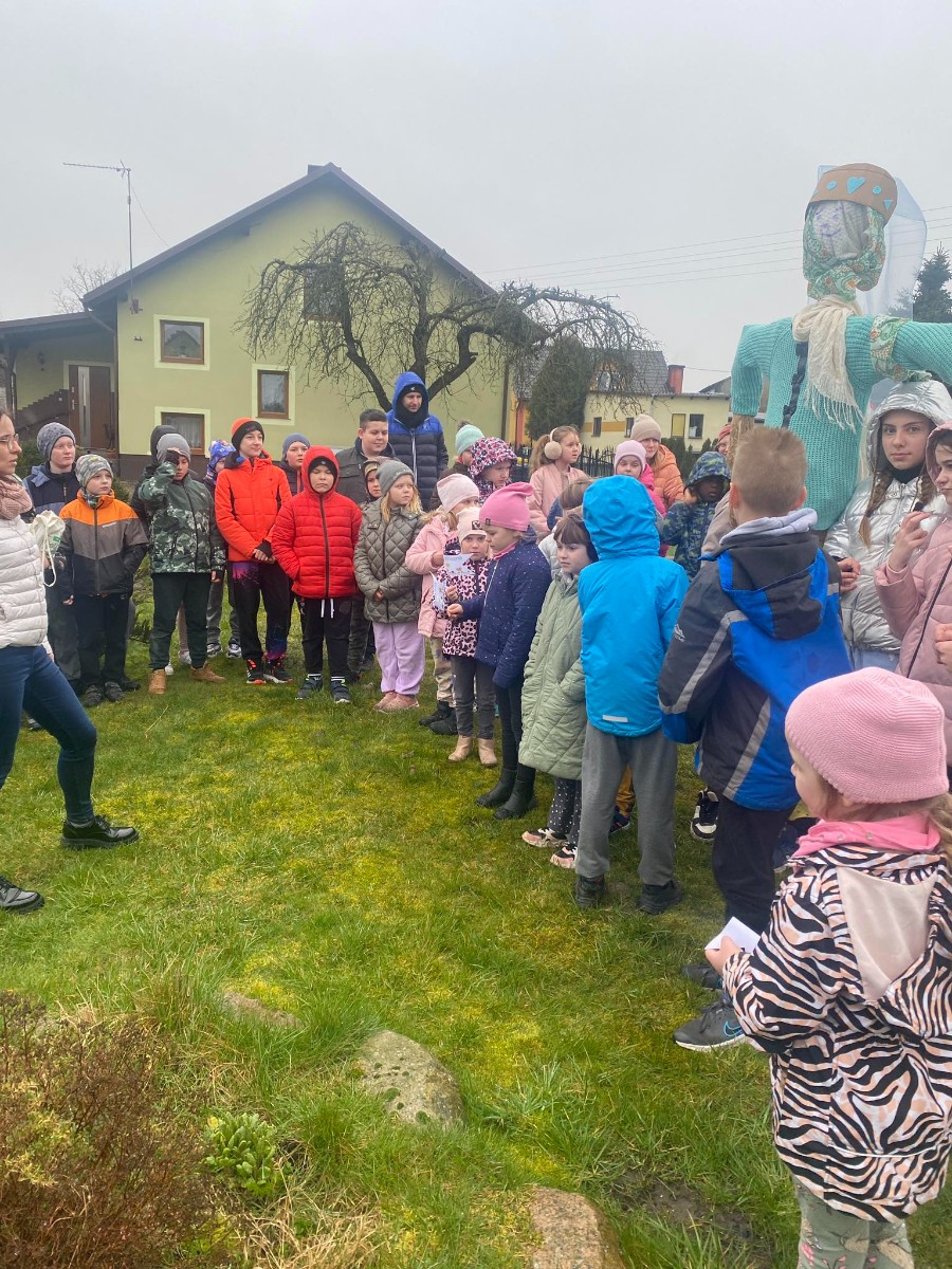 21 marca to pierwszy dzień kalendarzowej wiosny. Po długiej zimie z tęsknotą wyczekujemy tego dnia i jest to duży powód do radości dla wszystkich zmęczonych zimnem i wcześnie zapadającym mrokiem. W tym roku zanim wyruszyliśmy na przemarsz ulicami wsi mogliśmy obejrzeć krótki teatrzyk opowiadający o pierwszych oznakach przyjścia wiosny. Później pomimo deszczowej pogody udaliśmy się na przemarsz, aby obwieścić przybycie wiosny. W trakcie przemarszu uczestnicy nieśli marzannę, kolorowe chorągiewki oraz śpiewali piosenki o tematyce wiosennej.